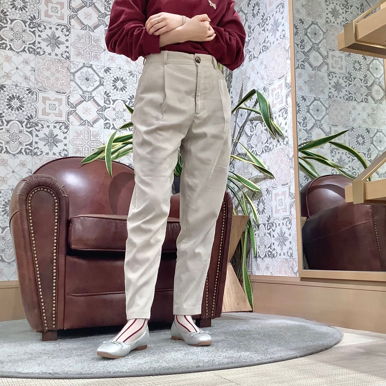 スカートにもパンツにも万能に馴染む王道デザインです!
