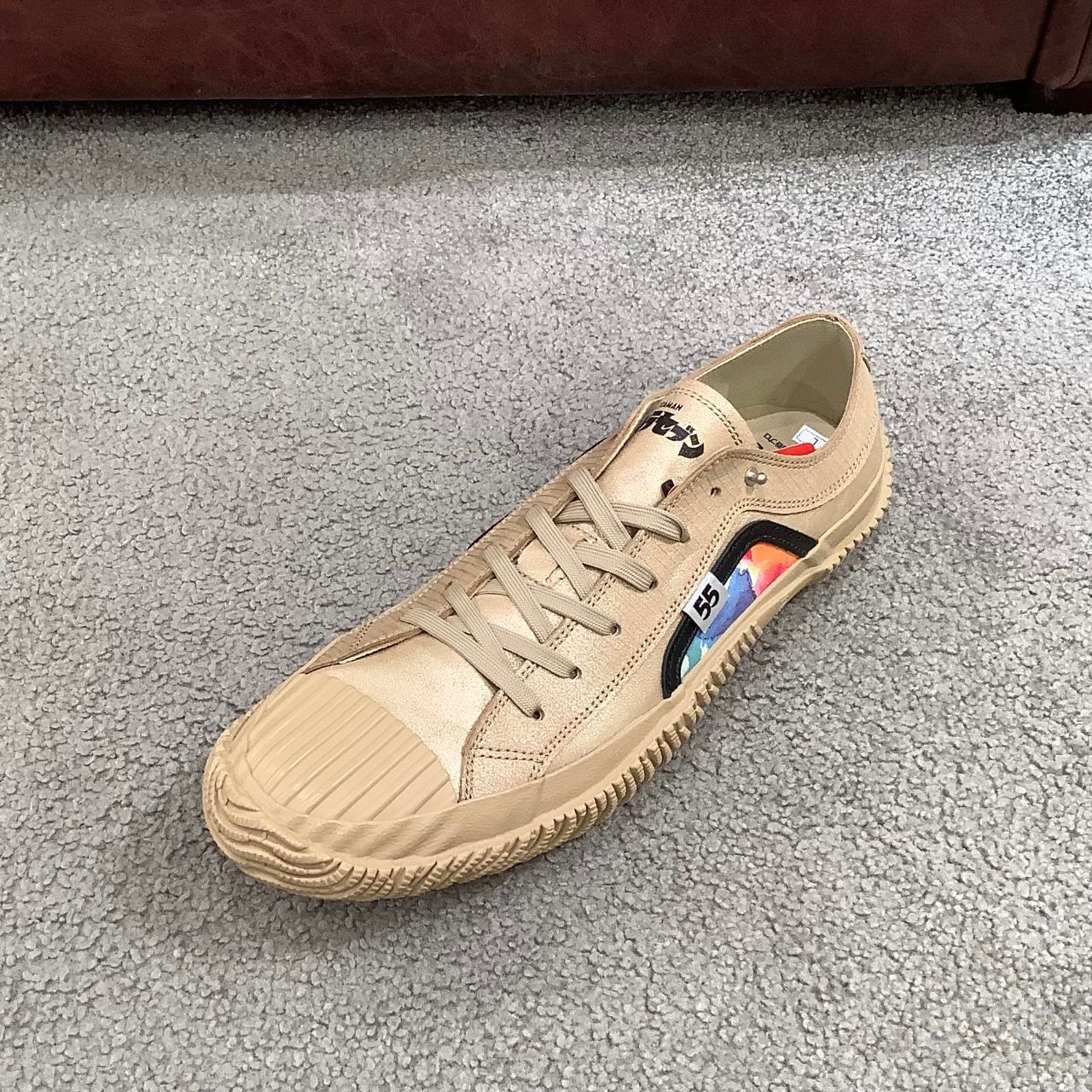 ベロやシューレースのオリジナルロゴ、ピスネーム、インソールのプリントなど、細部までこだわりが詰まっています。