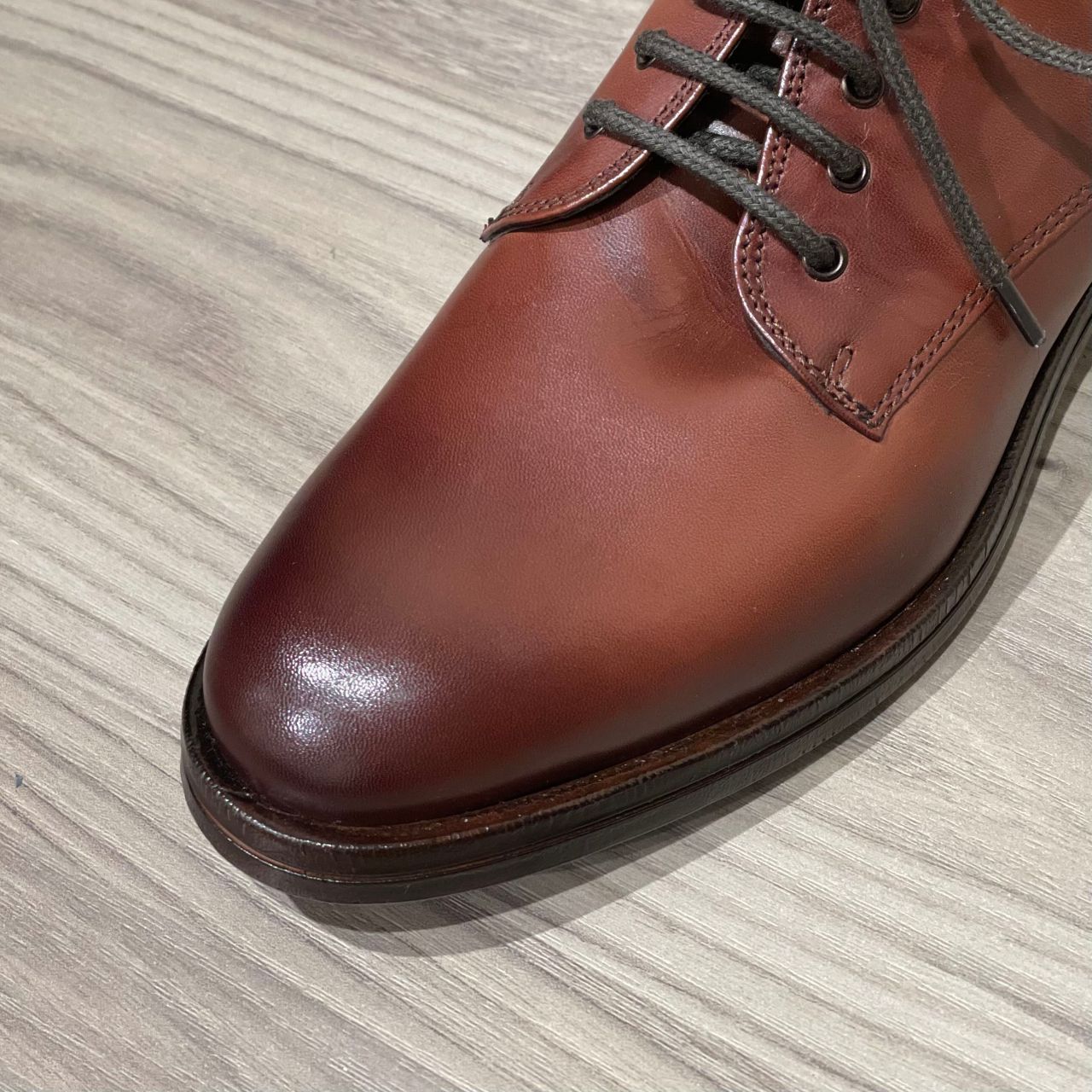 爪先に焦がし加工が施されており、ニュアンスのあるカラーに仕上がっております。