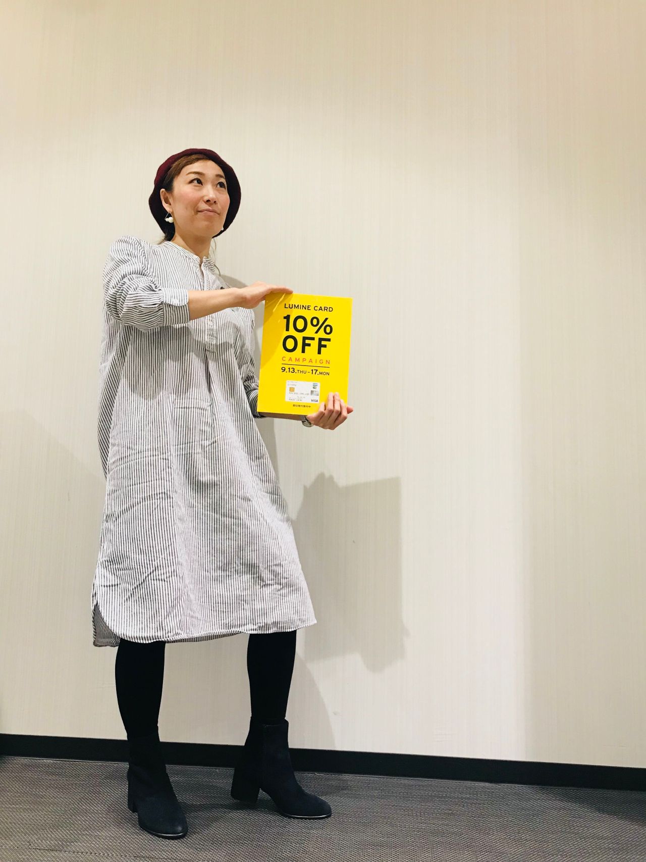 ただいま、ルミネ10%OFFお取り置きキャンペーンを実施しております。