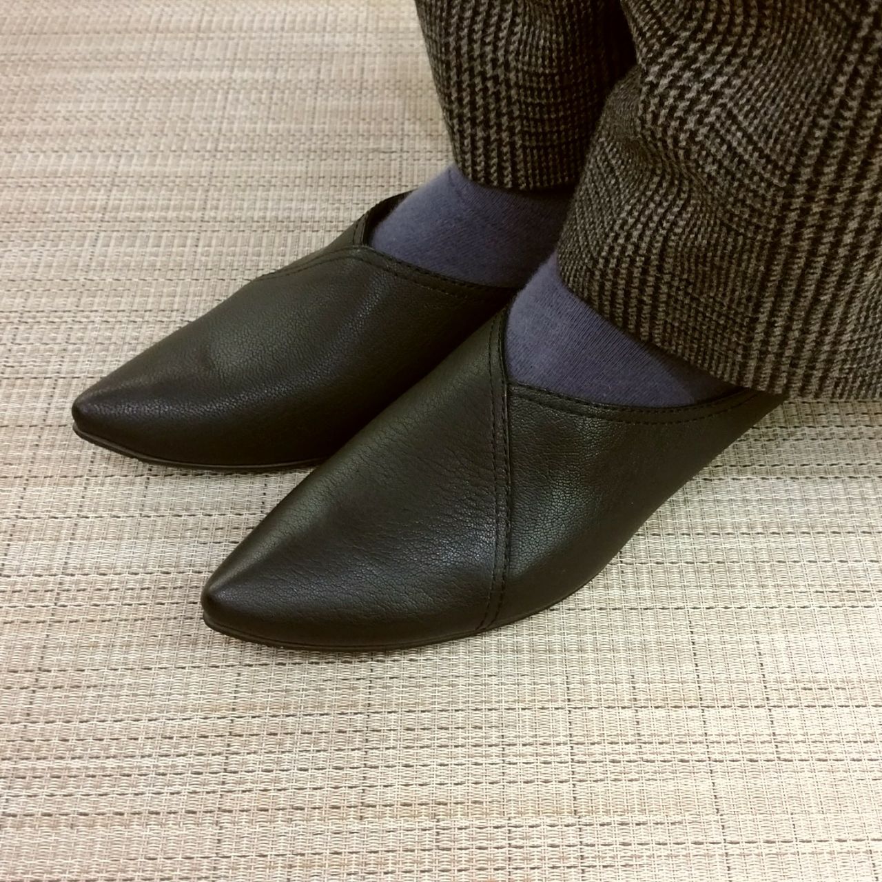 :柔らかい山羊革で水や汚れに強い素材です。雨の日でも気兼ねなくおしゃれに履いていただけます。