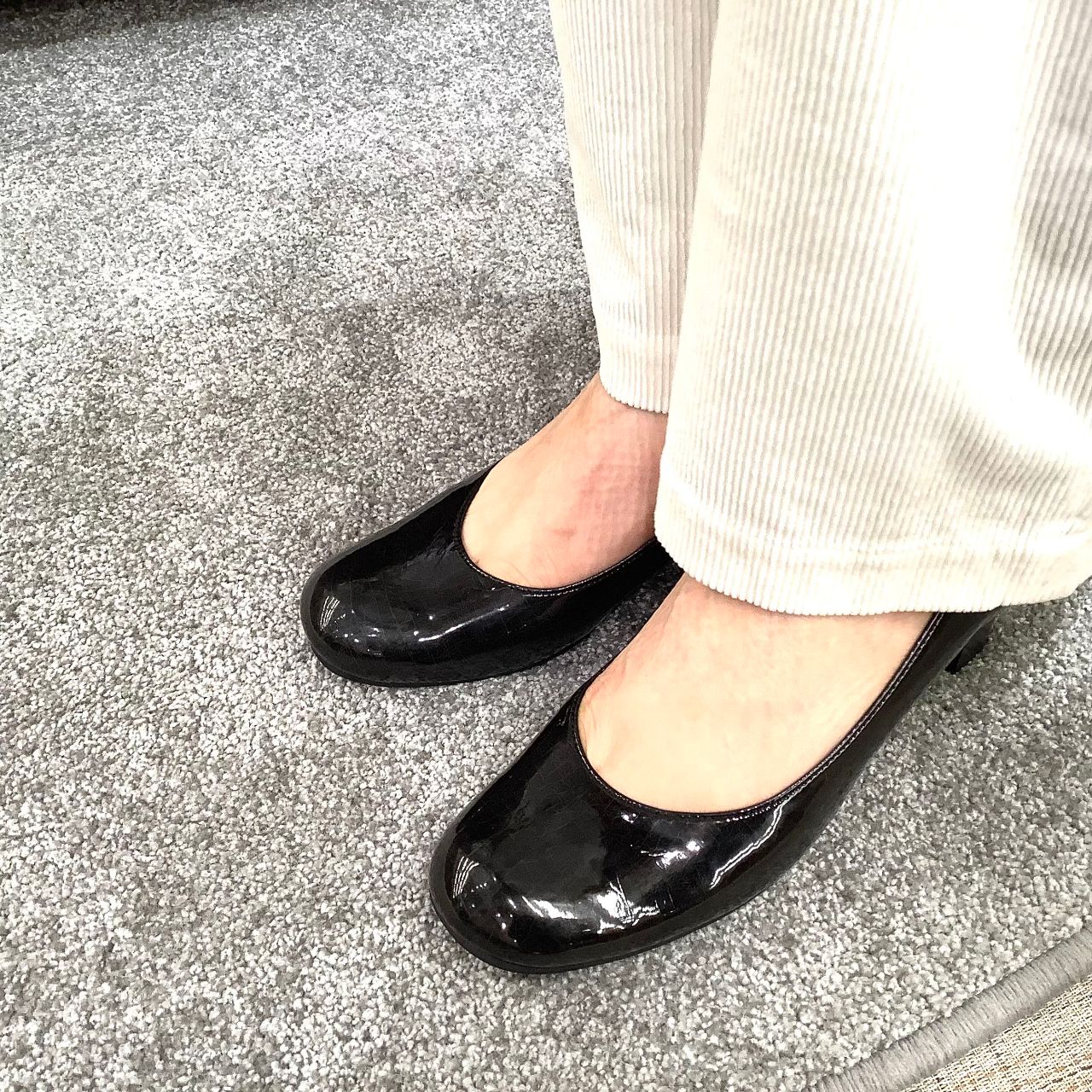 :(足入れコメント) とにかく履きやすいです!ヒールな安定感が抜群で5cmの高さがあるとは思えないですー!