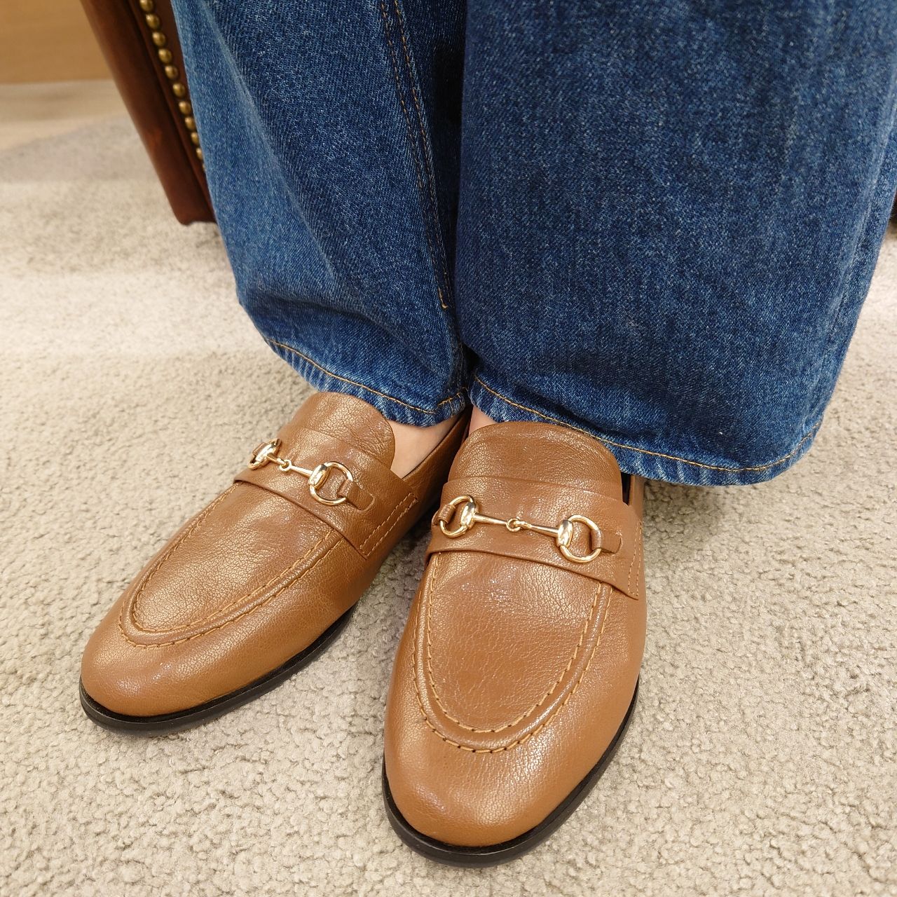 カッチリ見えるビットローファーも柔らかい雰囲気に◎