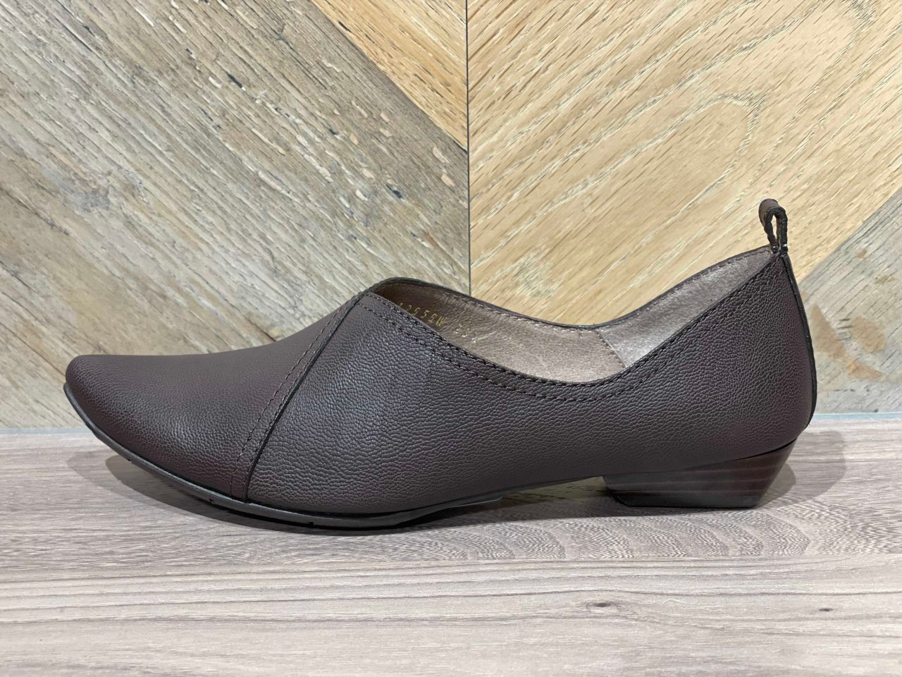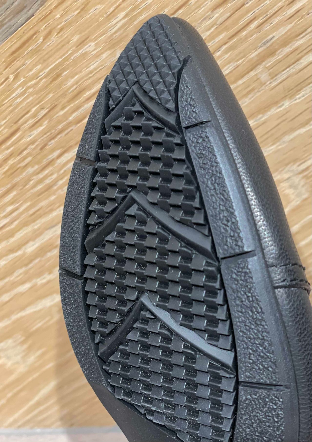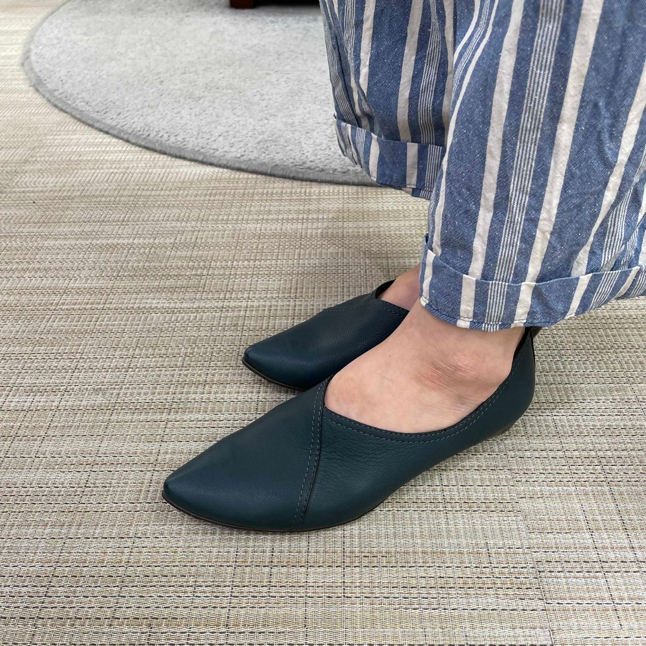 :ポインテッドトゥですが幅広の作りなので足入れが良く、とても履きやすいです。かかと周りの高さが高過ぎず、くるぶしに当たらない為、程よいホールド感があります。