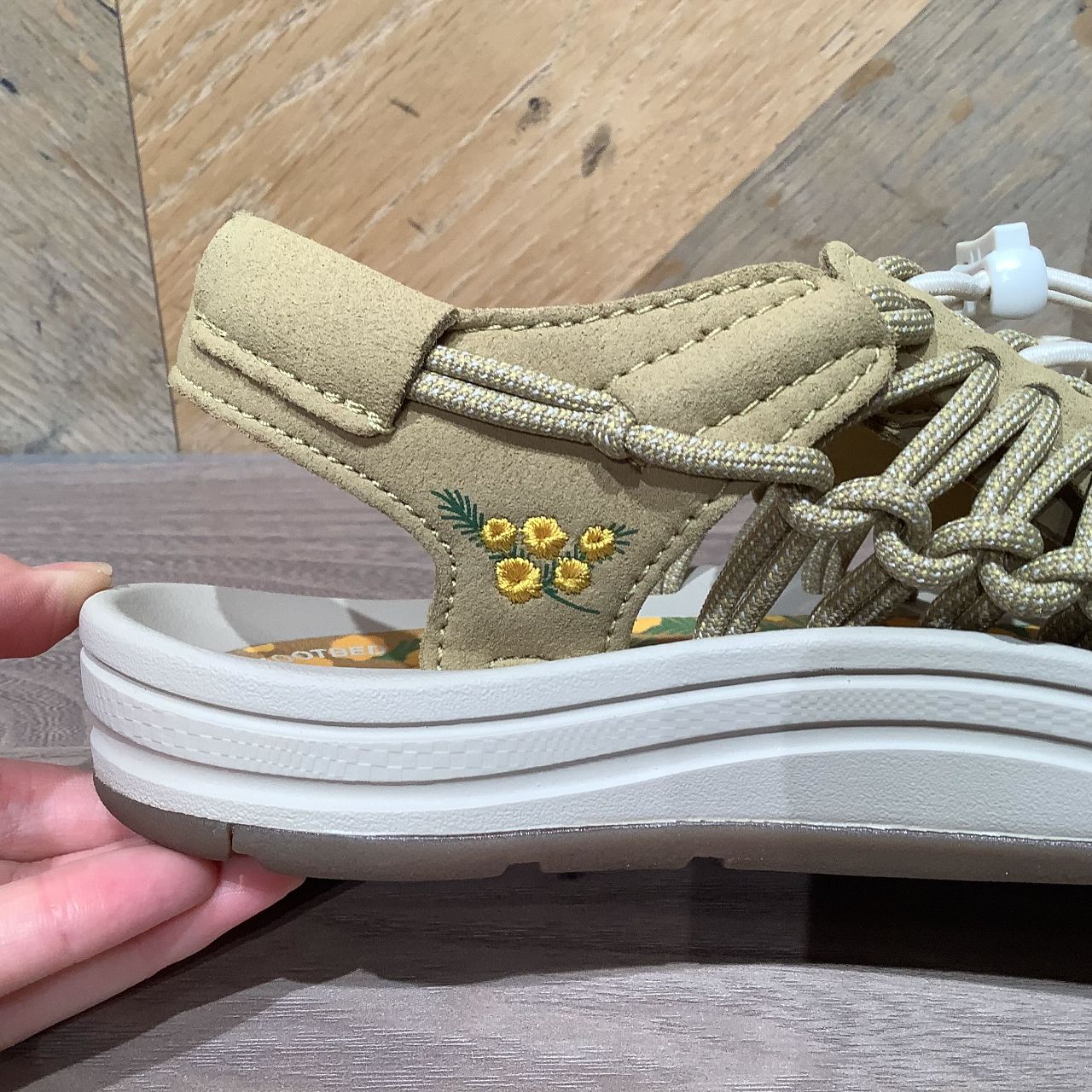良く見ると、くるぶし部分にはミモザの刺繍が!可愛いですね!