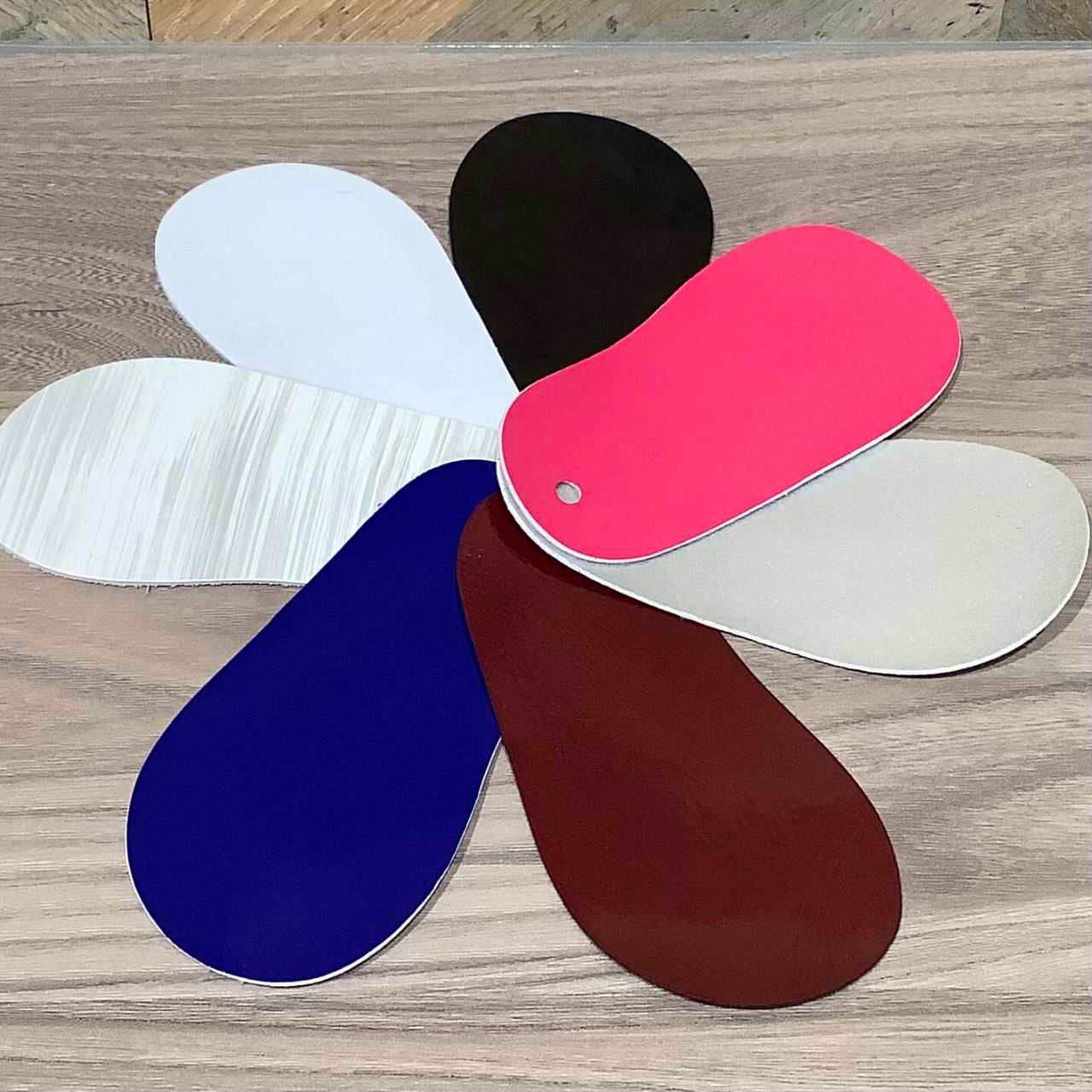 ※こちらは、カラーオーダー見本品です。型押しレザーやベロア系、メタリック系など様々な素材がセレクトされています。
