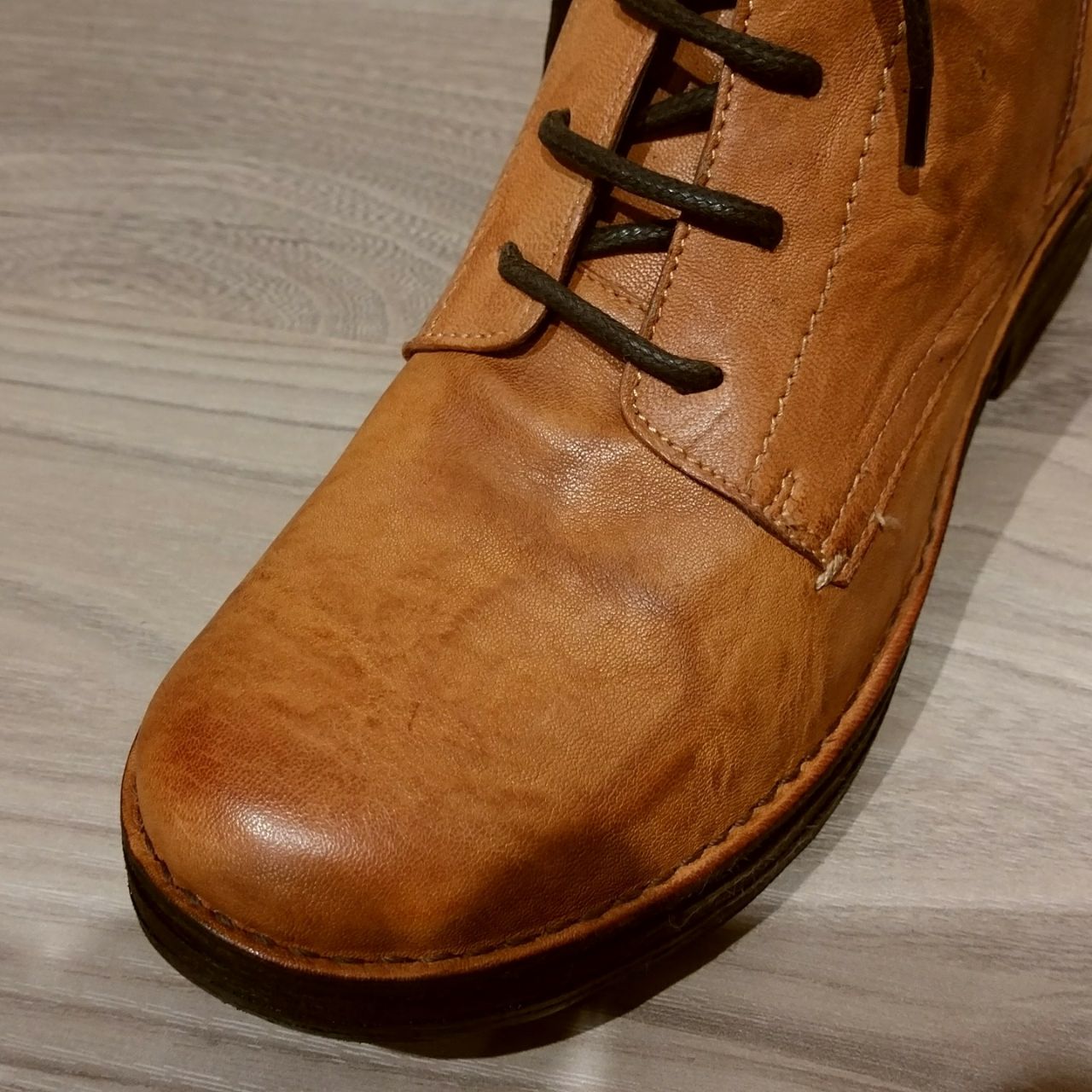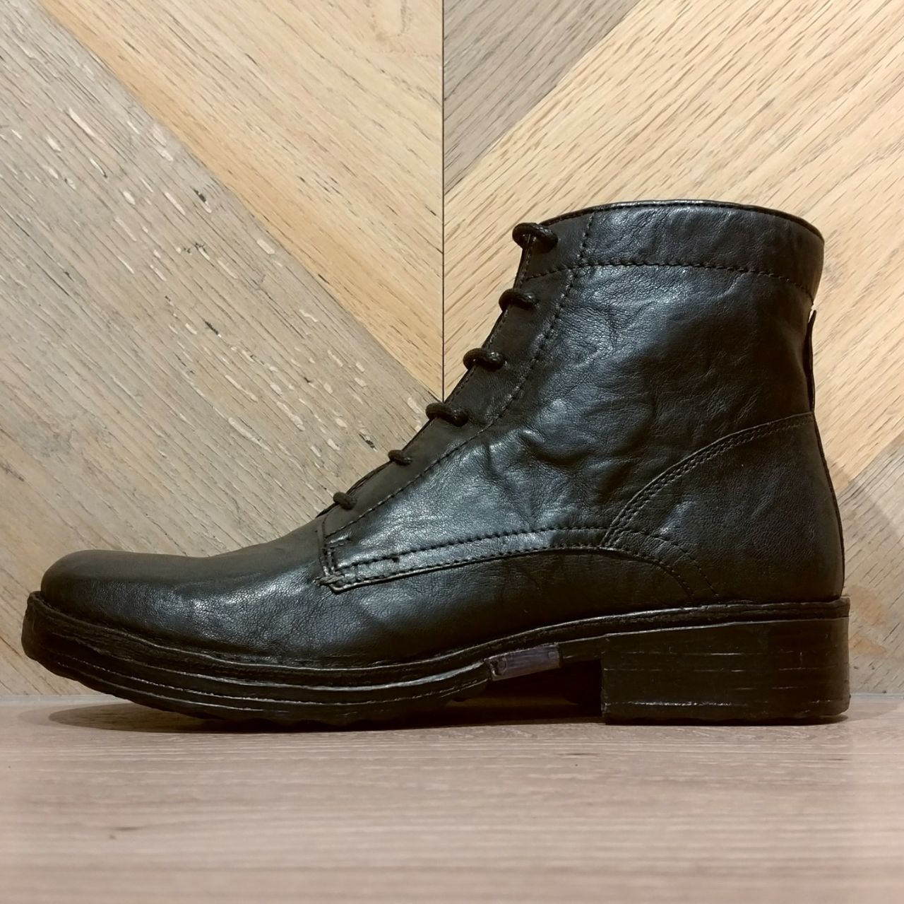 シンプルなレースアップブーツですが、革をシボ加工やムラ感を出してます。