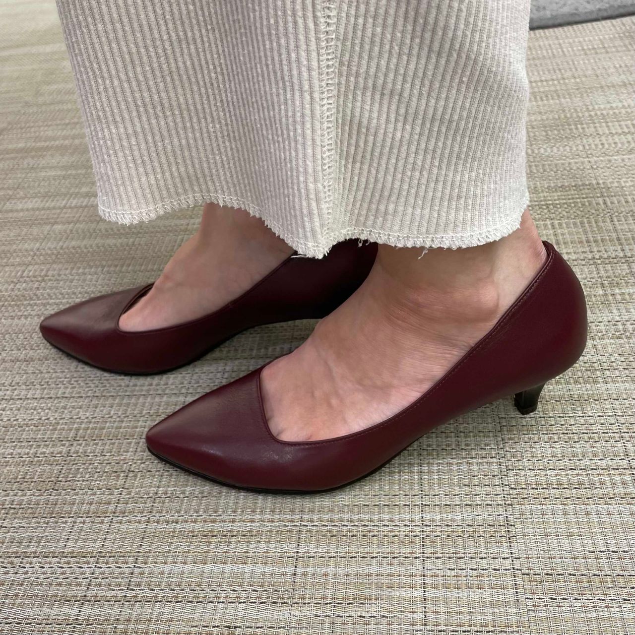 ヒールは4センチ前後と疲れにくい高さで、走ったりしても踵が脱げず、安定感抜群です!
