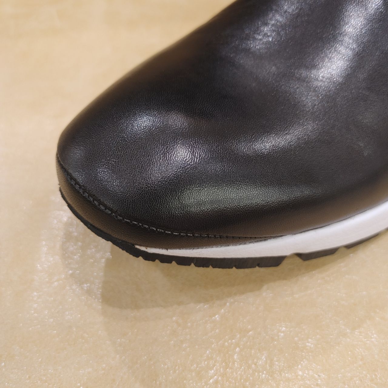 強度を高めるために爪先部分には牛革を、全体には通気性としっとりと包み込む羊革を使い分けて使用されています。