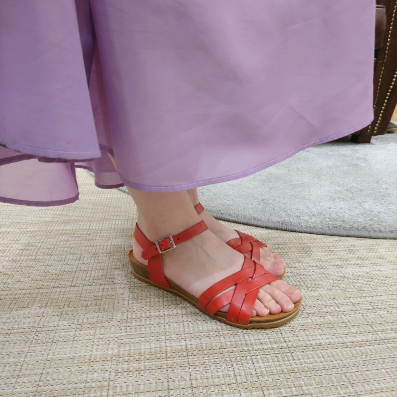 コルクソールと細線ベルトが軽やかな印象です!