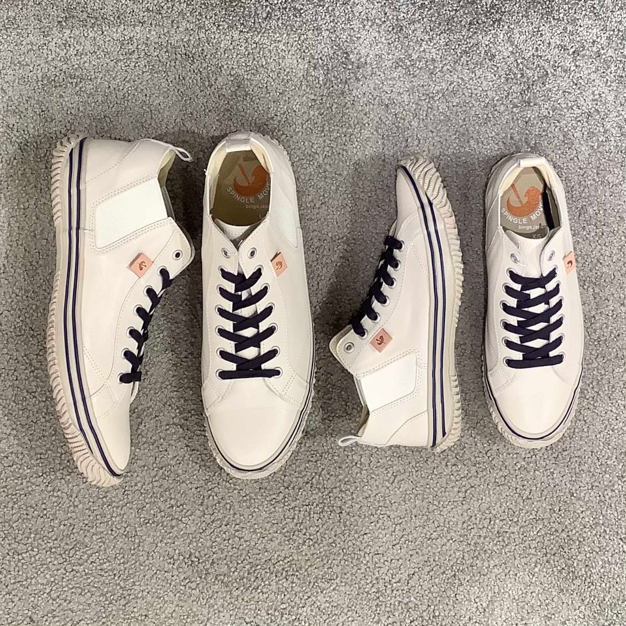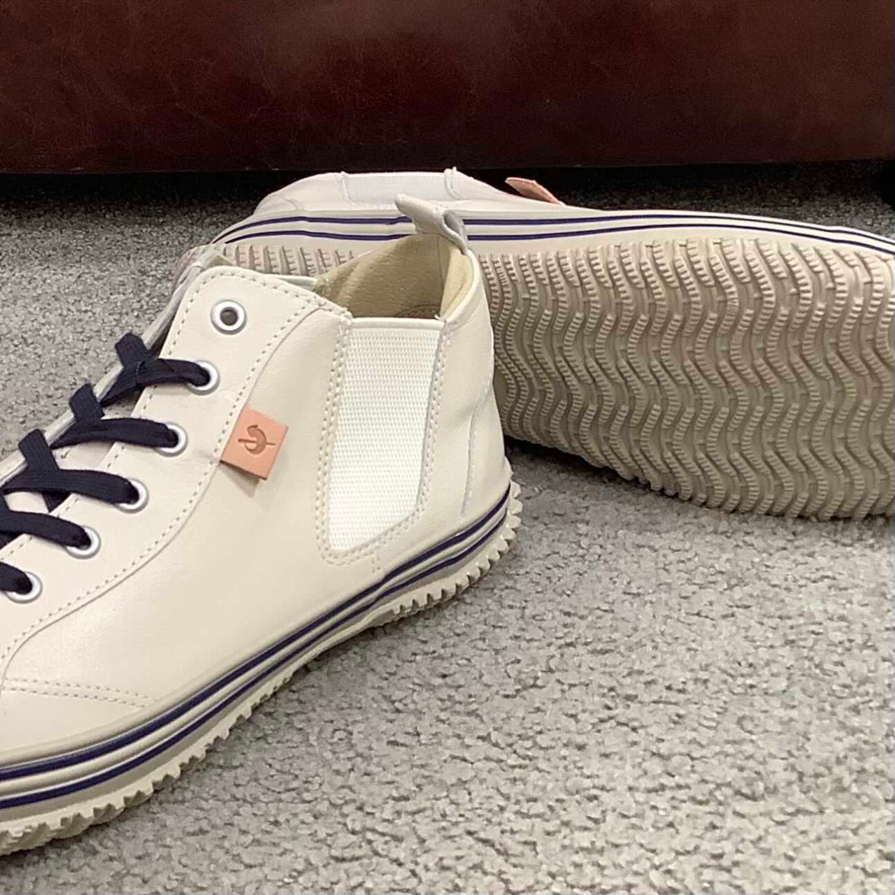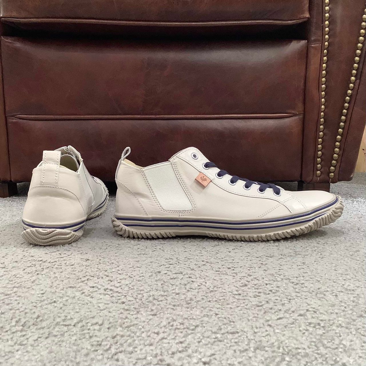 フォクシングテープとアウトソールはグレー、ネイビーのシューレースとラインが程よいカジュアル感を演出してくれます。