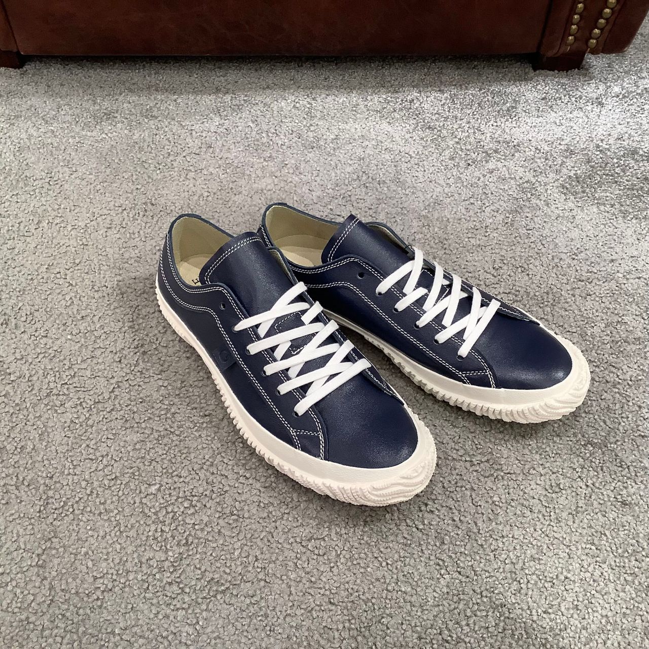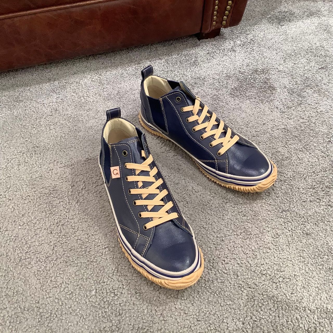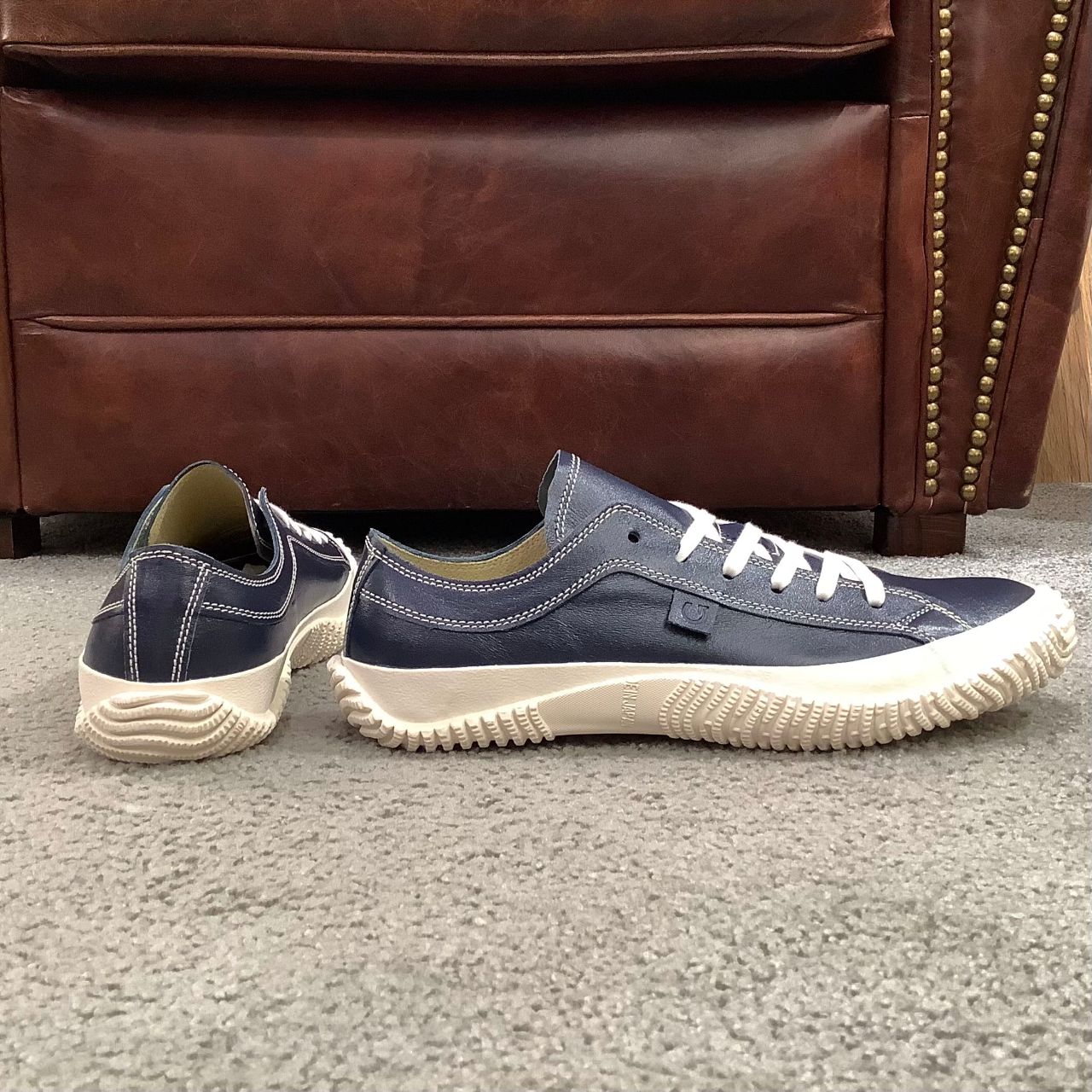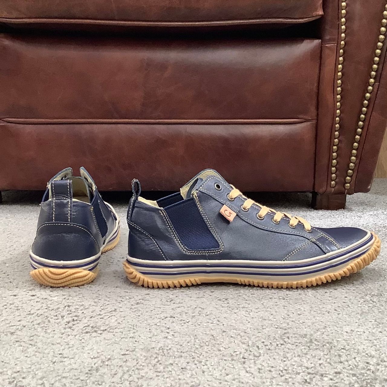 サイドゴアやフォクシングテープのラインも落ち着いた同系色のネイビー。
