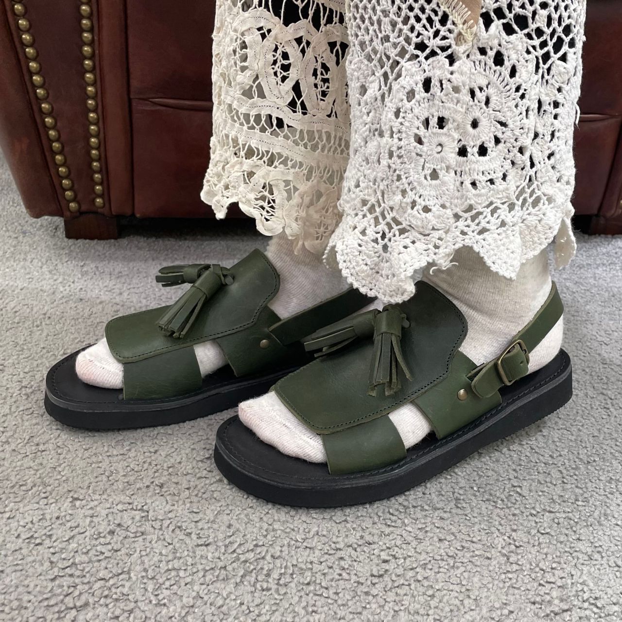 甲のフリンジが可愛いこちらのサンダル。