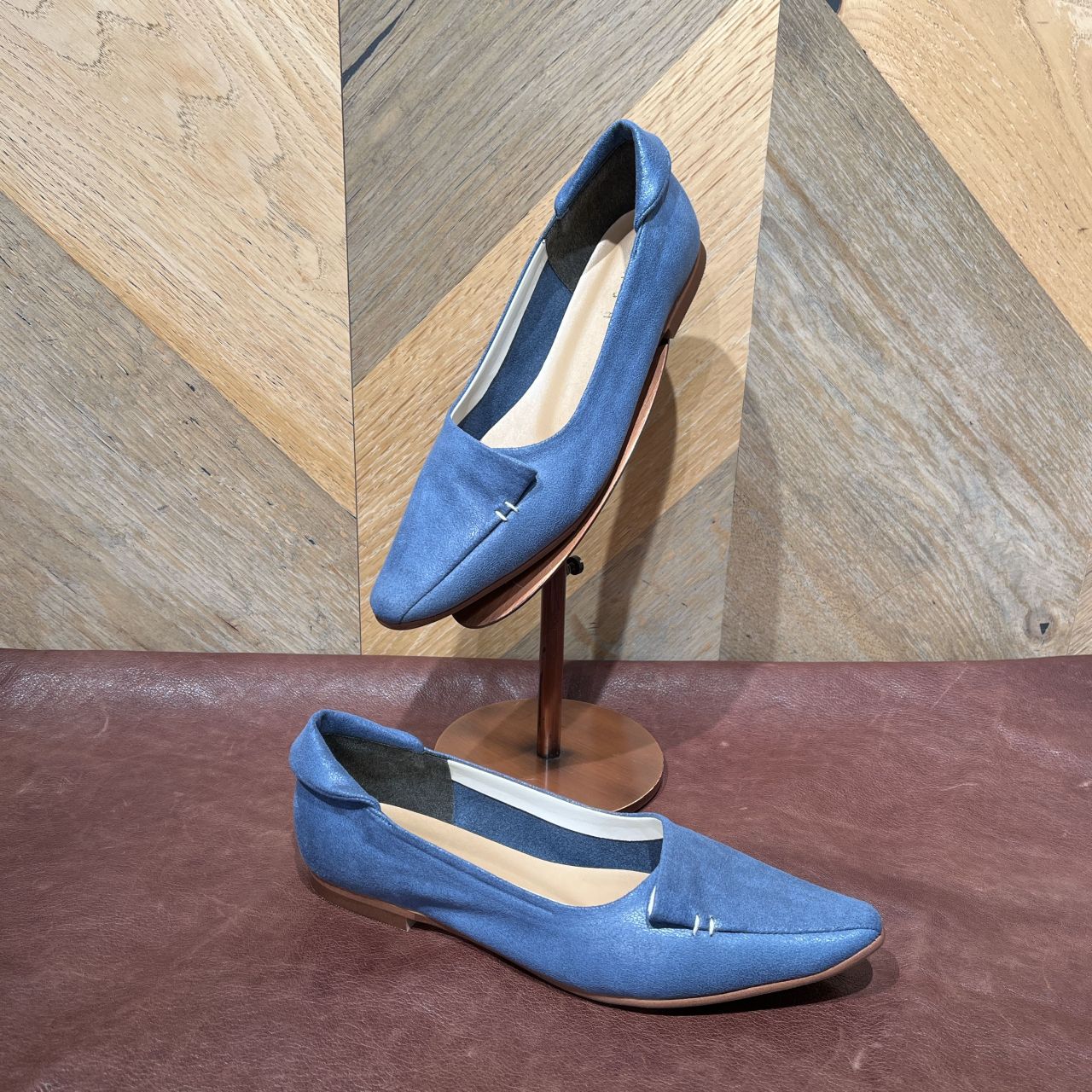 光沢感のあるヌバック素材と濃いブルーが、上品な1足に仕上がりました。