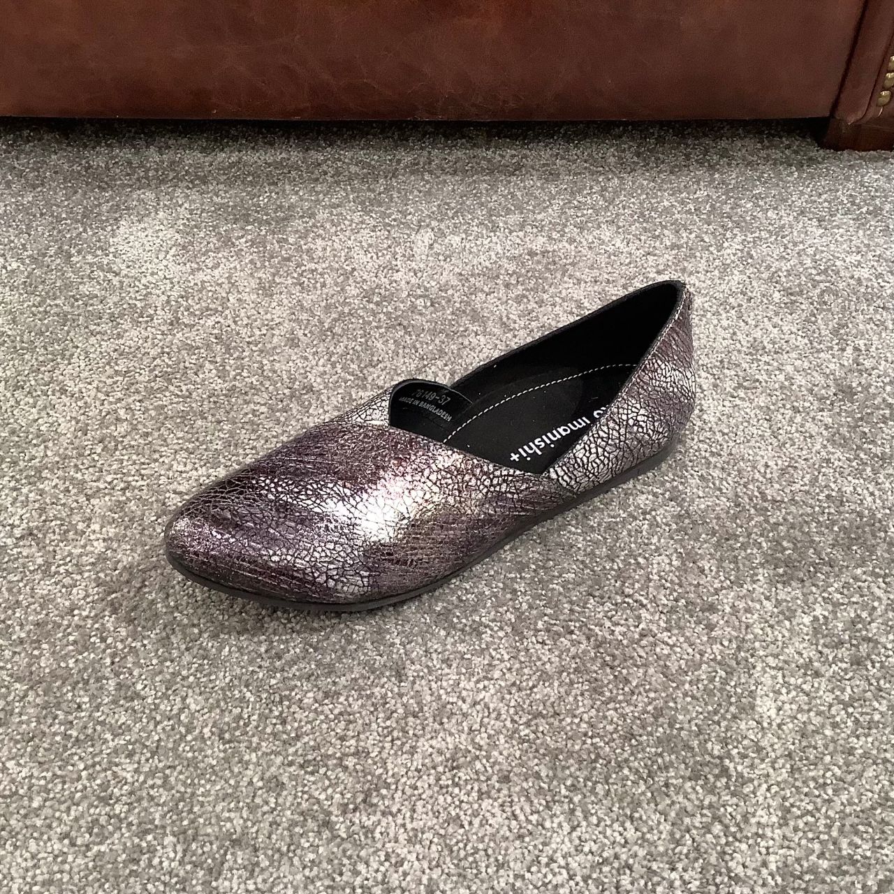 爪先のデザインが特徴的なフラットシューズ。