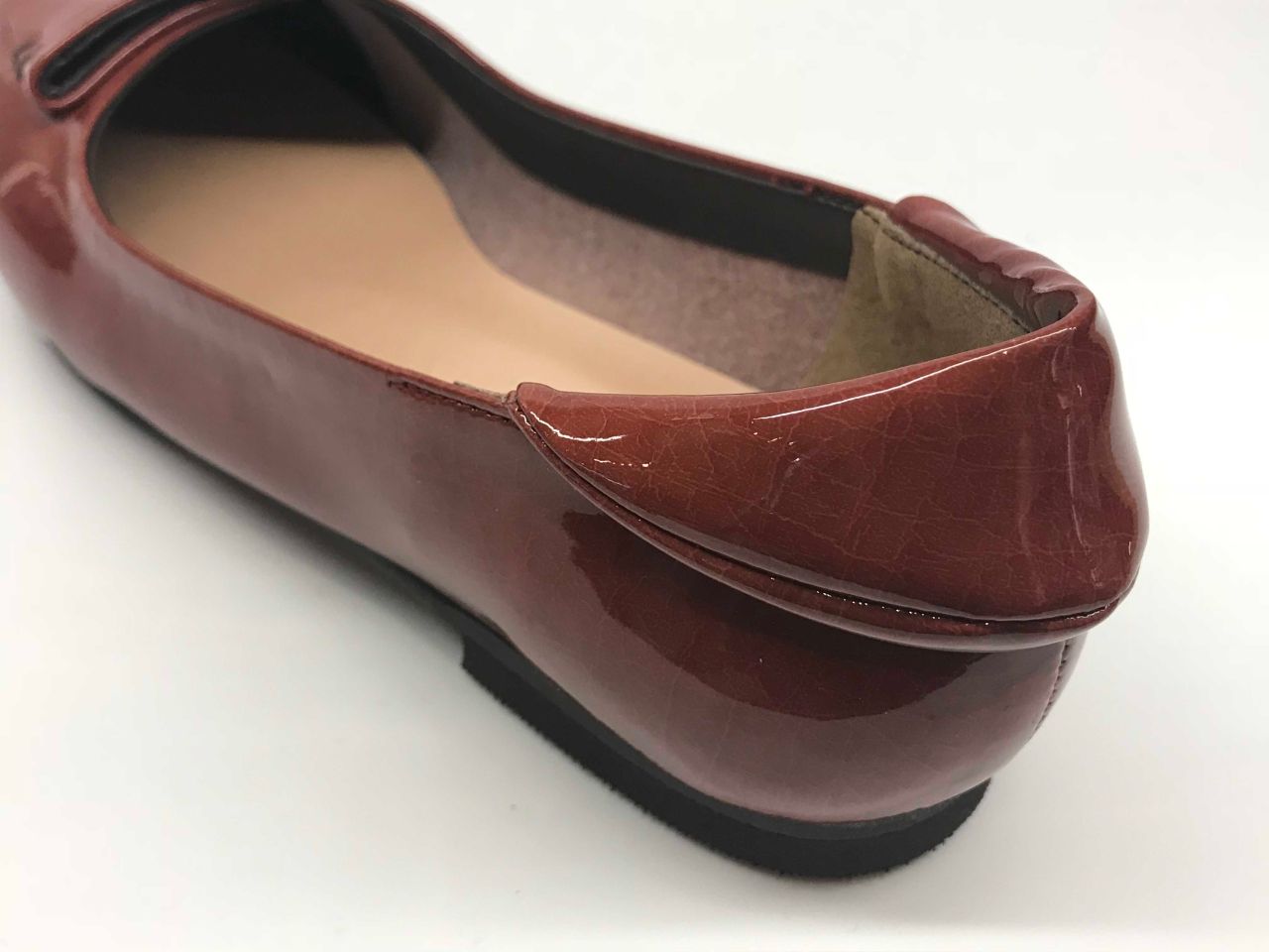 後ろが折れているデザインはおしゃれなだけではなく、かかとが抜けにくくなっています!