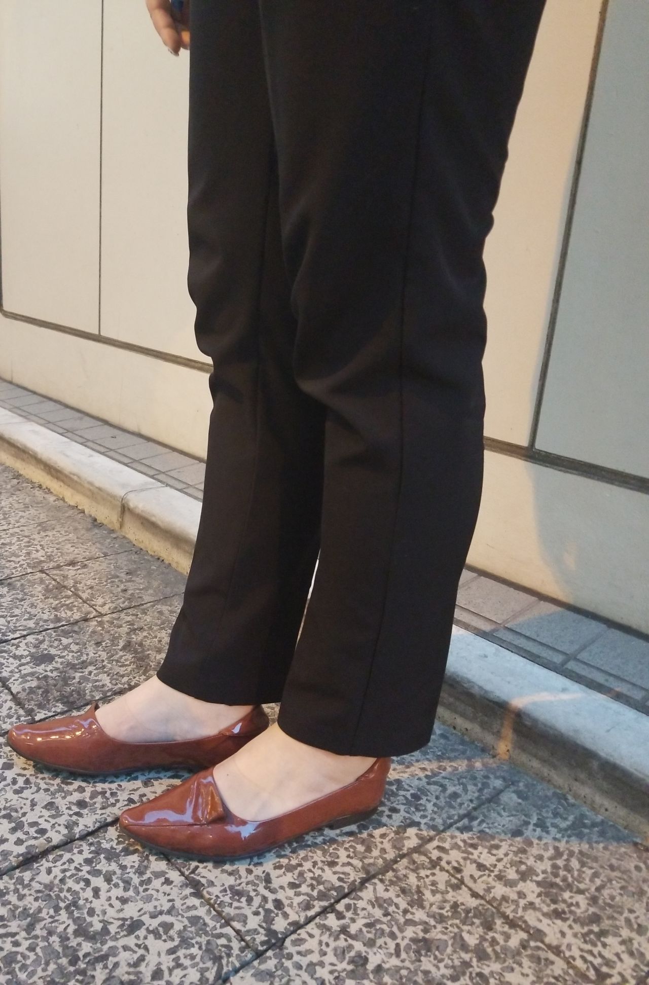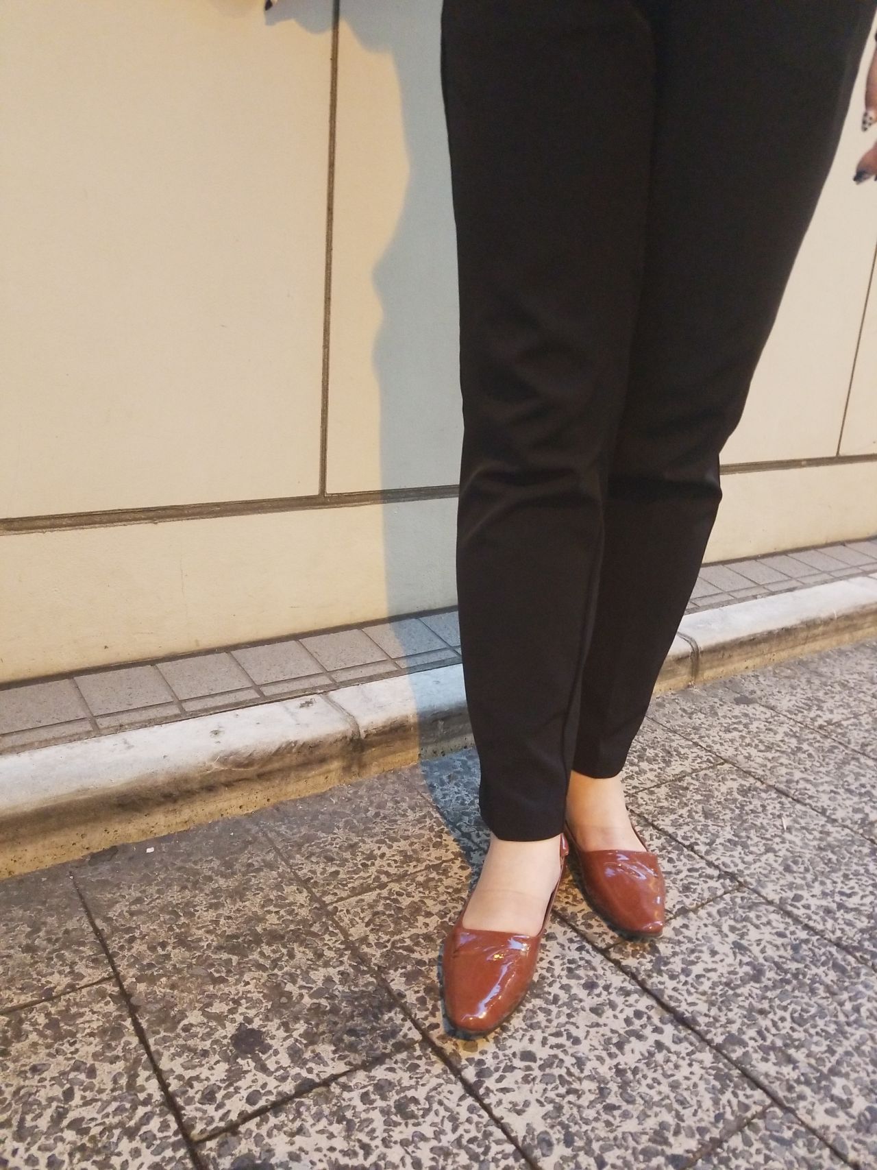 フラットパンプスですが少しヒールがあるので、お足のラインがより美しく見えます!