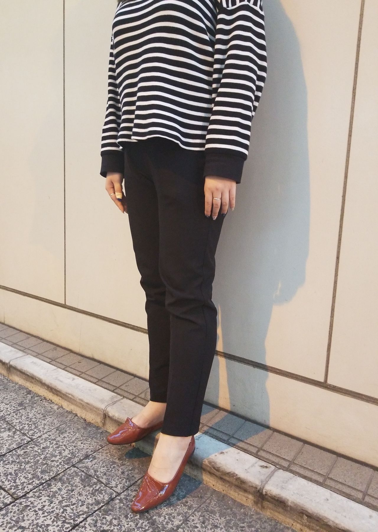 ボーダーのトップス×ブラックのスキニーパンツにCOPPEを履いてみました!