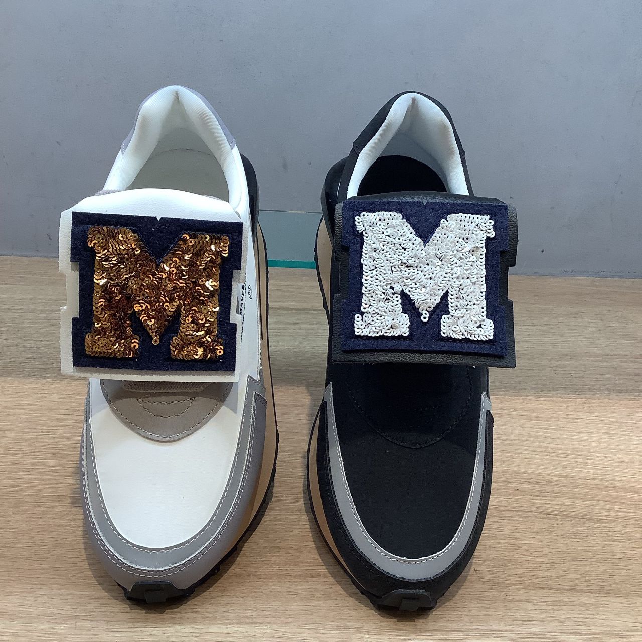 なんとこちらのスニーカー、正面のMのロゴ部分が取り外し可能になっており、気分に合わせてデザインを変えて履くことができちゃうんです!!!