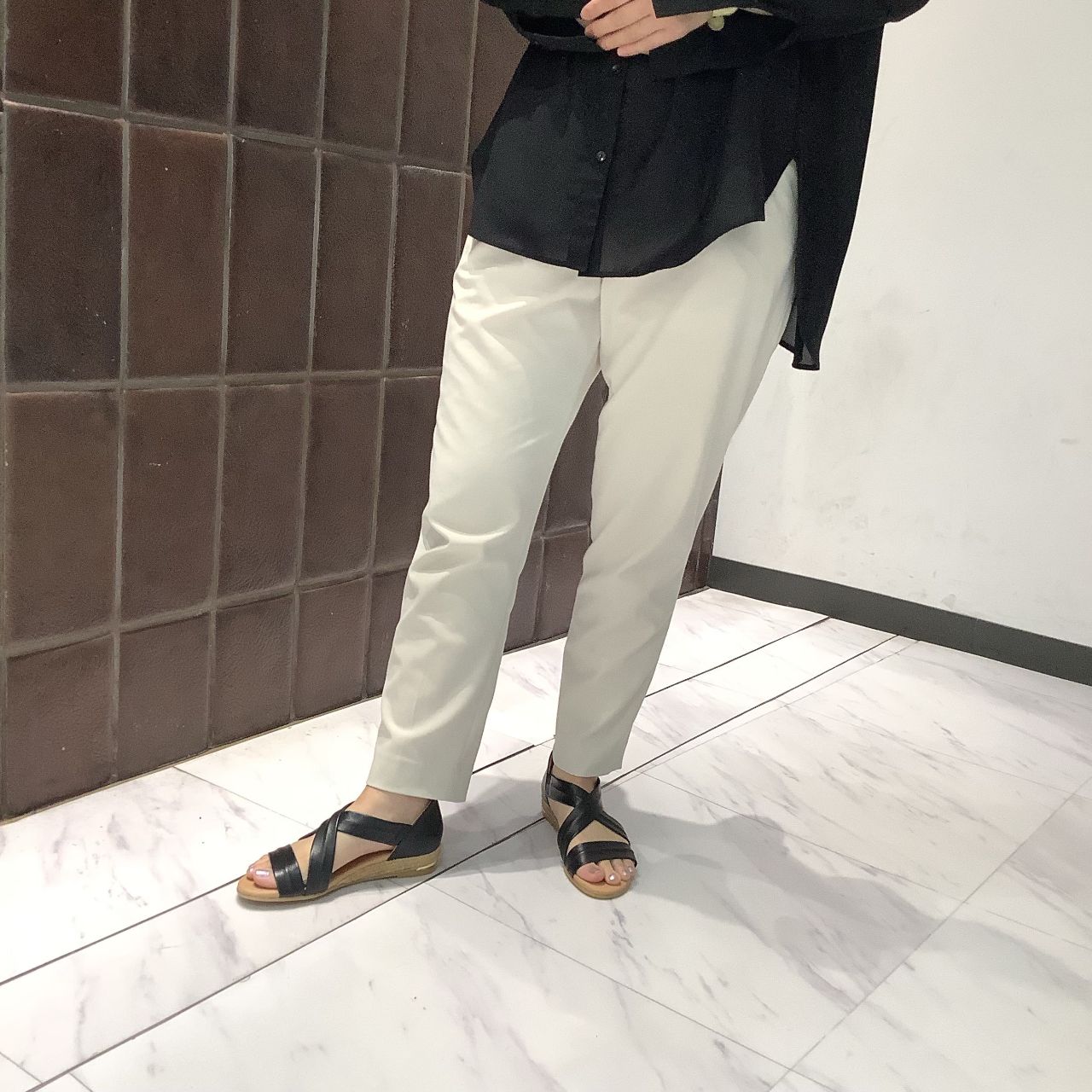 足元をスッキリ見せてくれるクロスデザインは、白パンツとの相性抜群です!