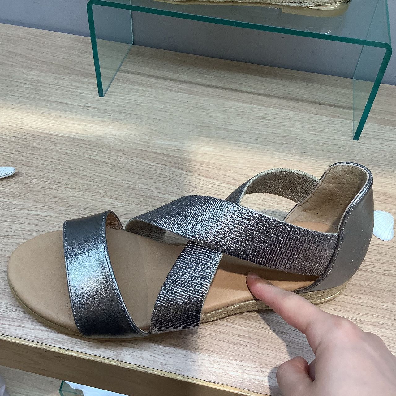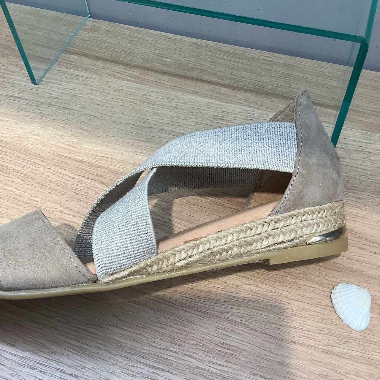 クロスデザインとジュート巻きがリゾート感溢れる一足です✨