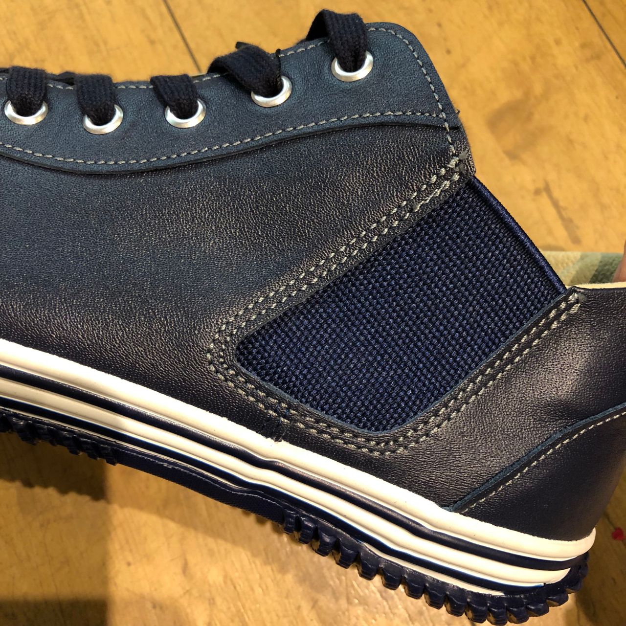 サイドゴム部分も同色のネイビーなのでスッキリした印象ですね。
