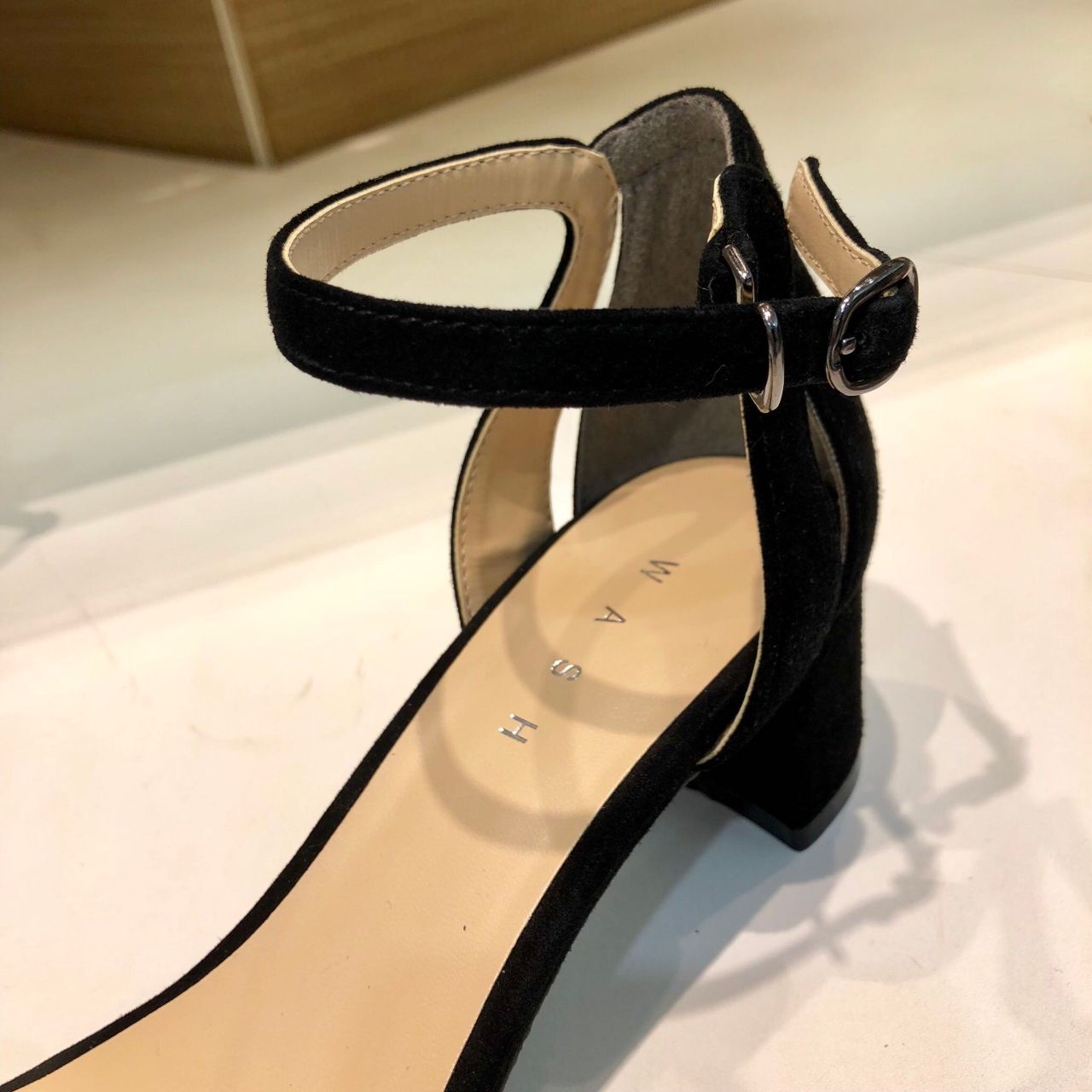 アンクルストラップ付きなのでヒールがあっても安心の履き心地。