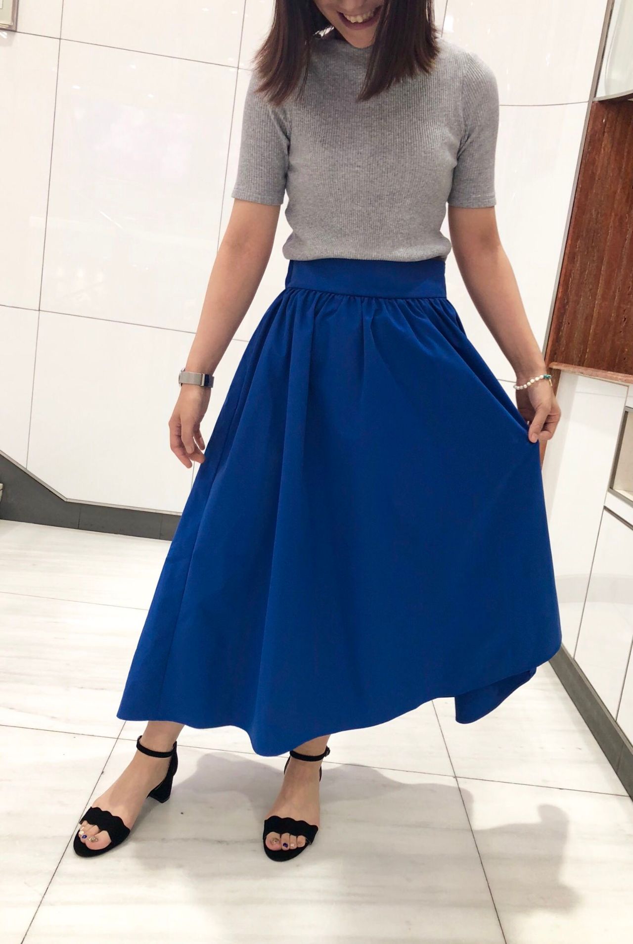 グレートップス×ロイヤルブルーのフレアスカートに合わせて。