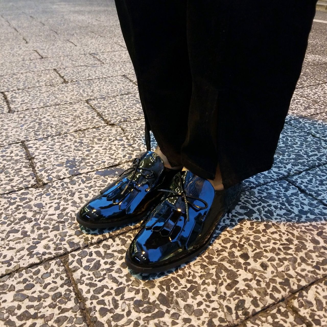 これからの季節はアウターを着る機会が増えると思いますがエナメルの艶感がブラックカラーでも重たくなり過ぎない上品なトラッドスタイルを演出してくれますよ!