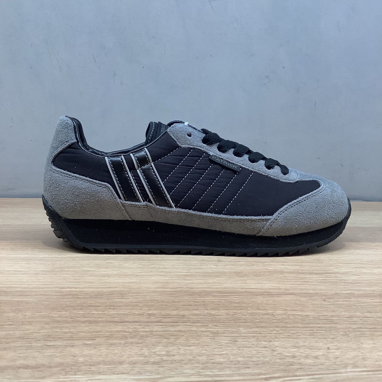 撥水加工が施されたナイロン素材×撥水ベロアを使用した一足。