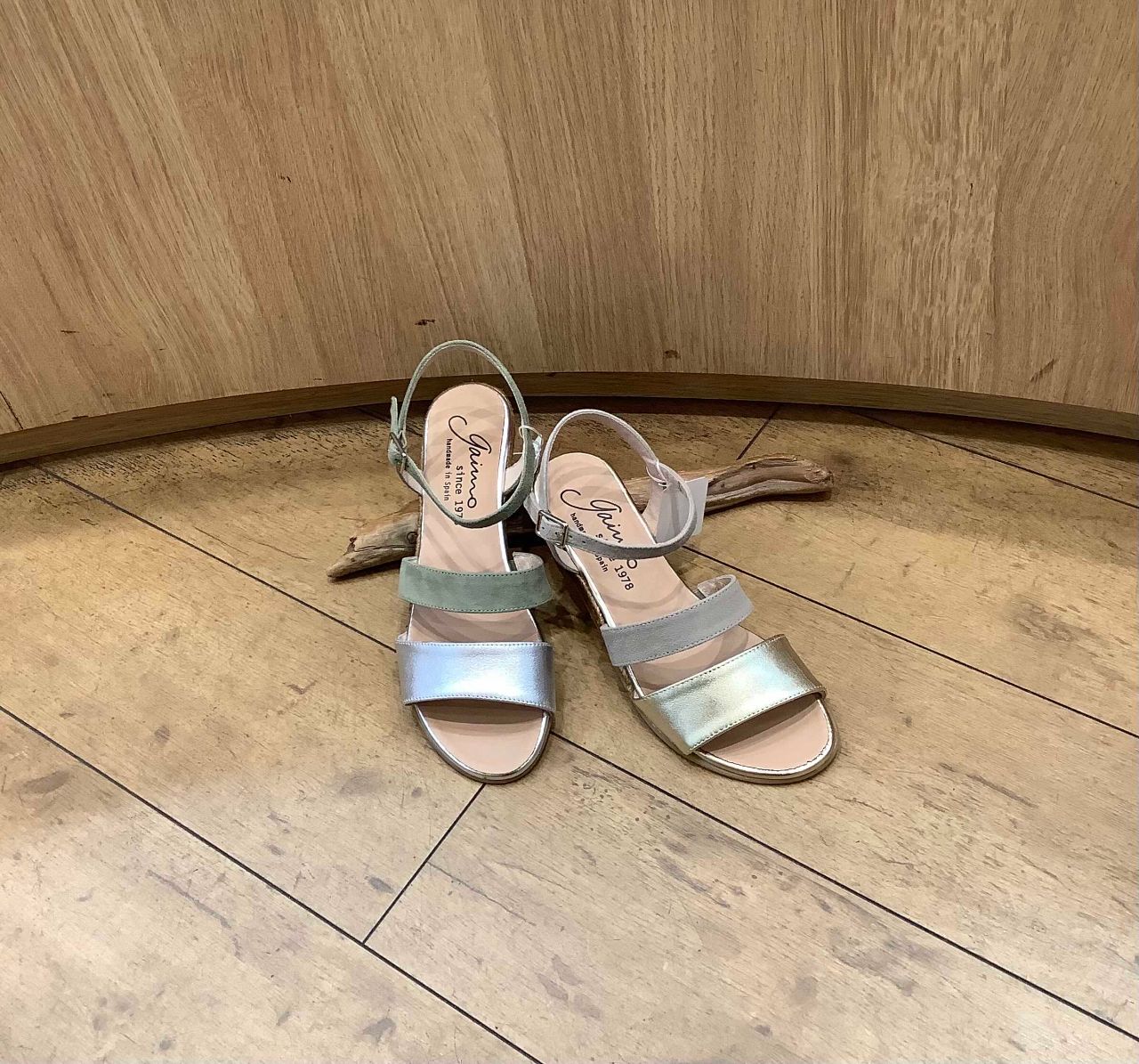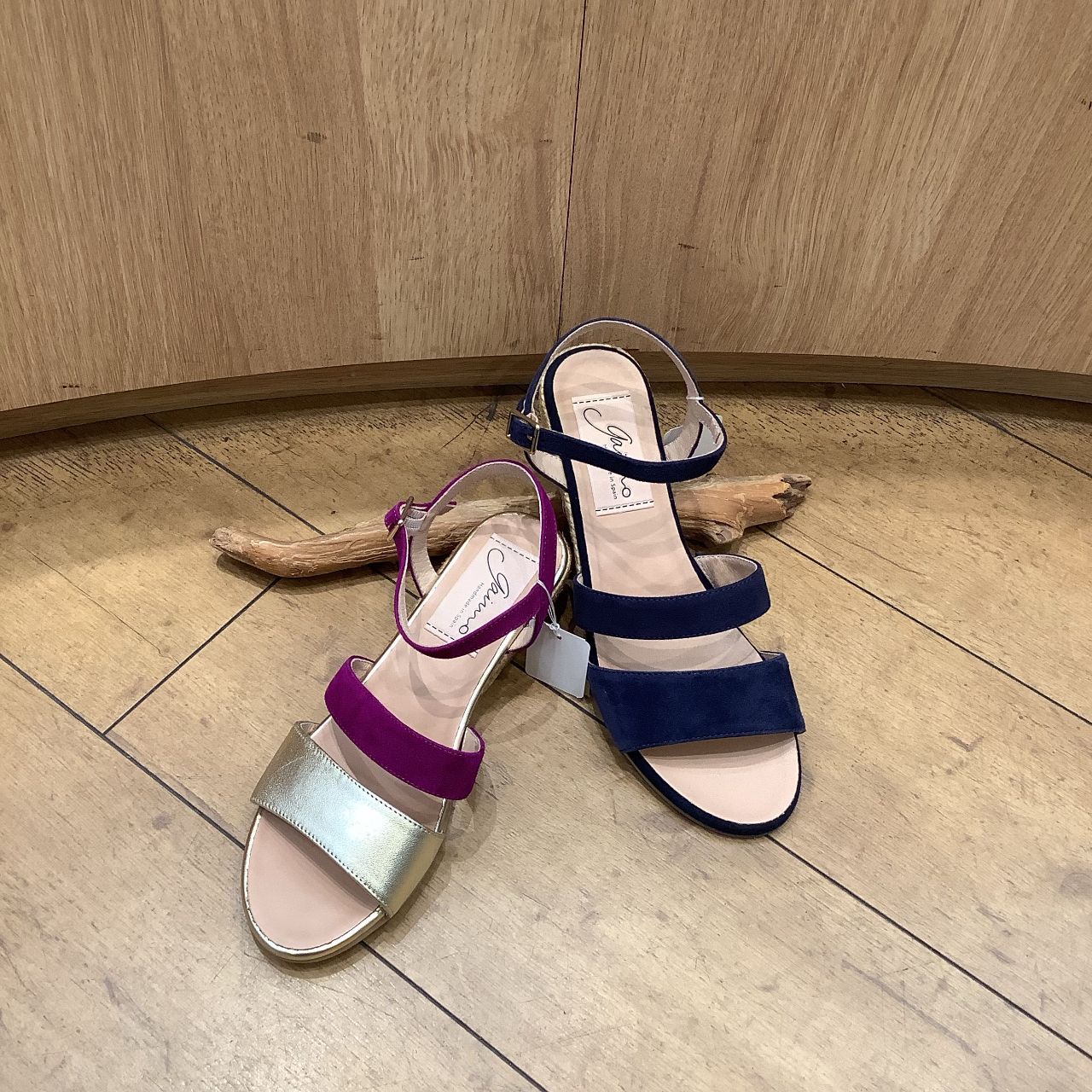 スエード素材とレザーとのコンビタイプと、絶妙なカラーが夏らしく爽やかな一足です。