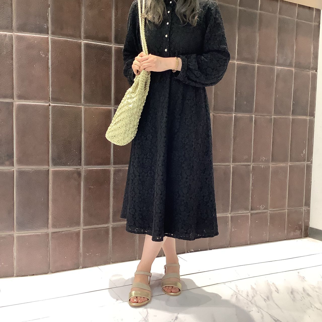 肌馴染みの良いゴールドとブラックのワンピースで、大人上品に。