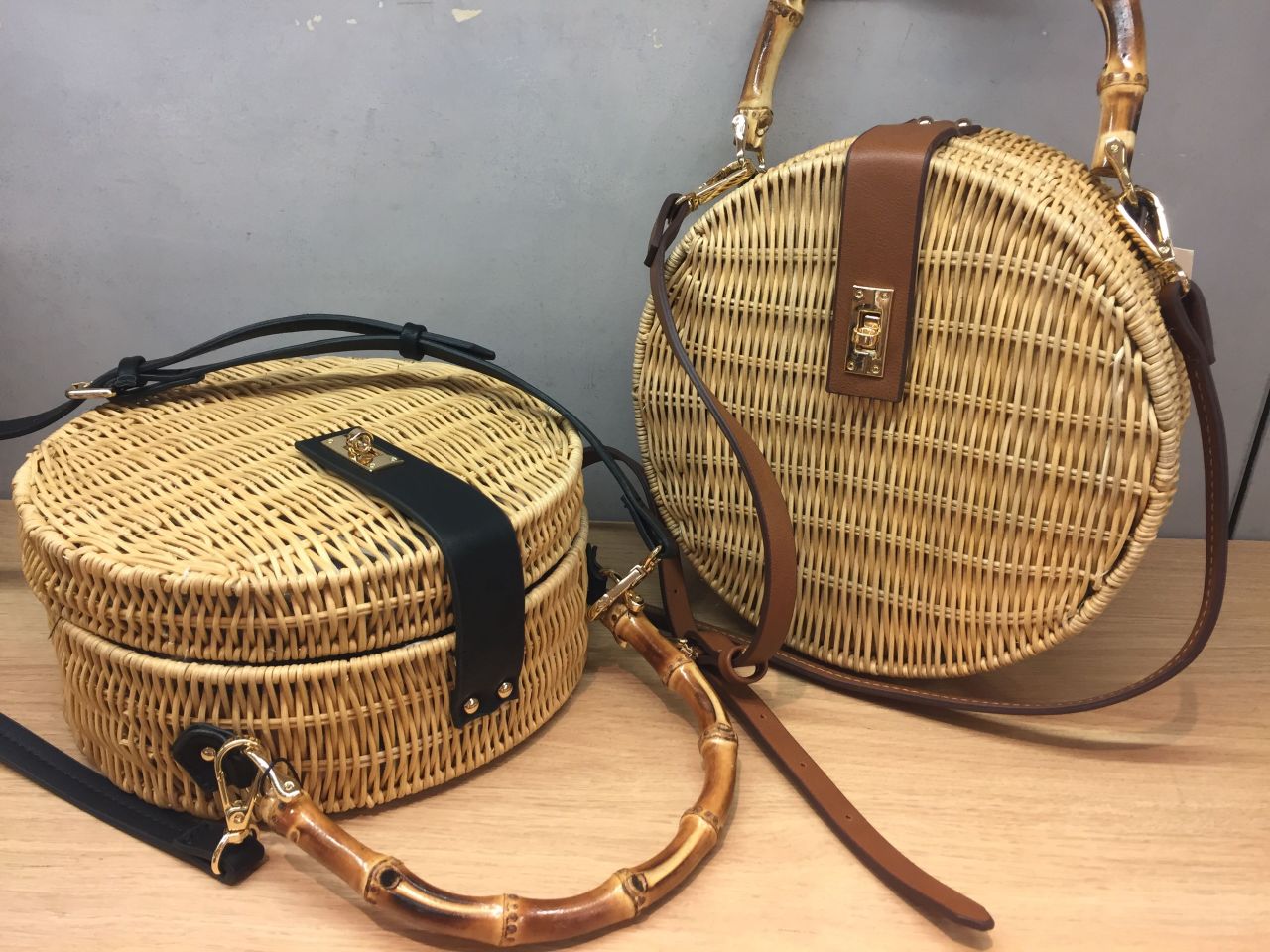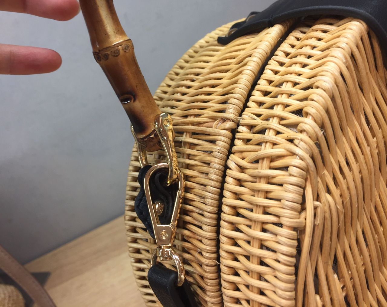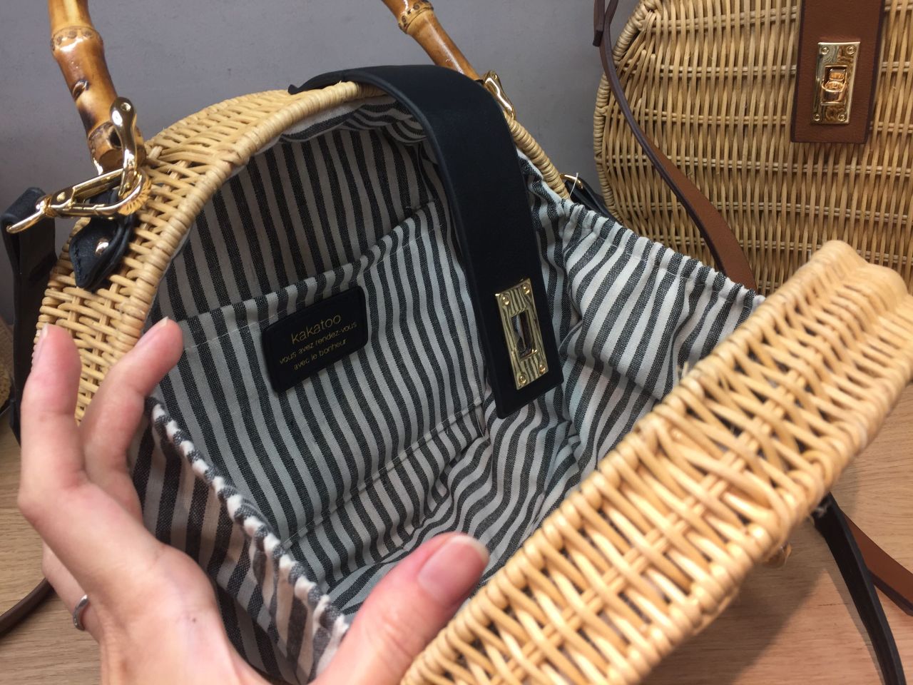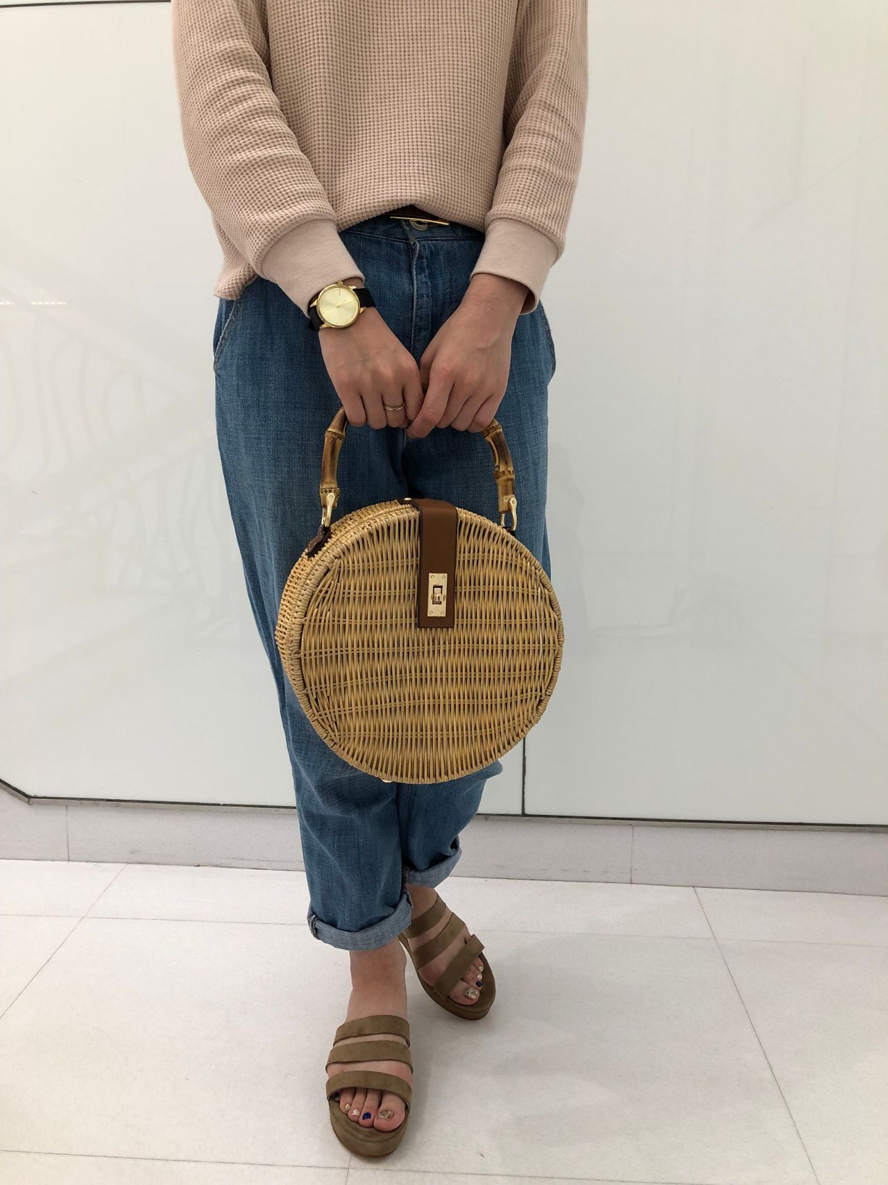 バンブーハンドルがポイントのラウンド型カゴバッグです!