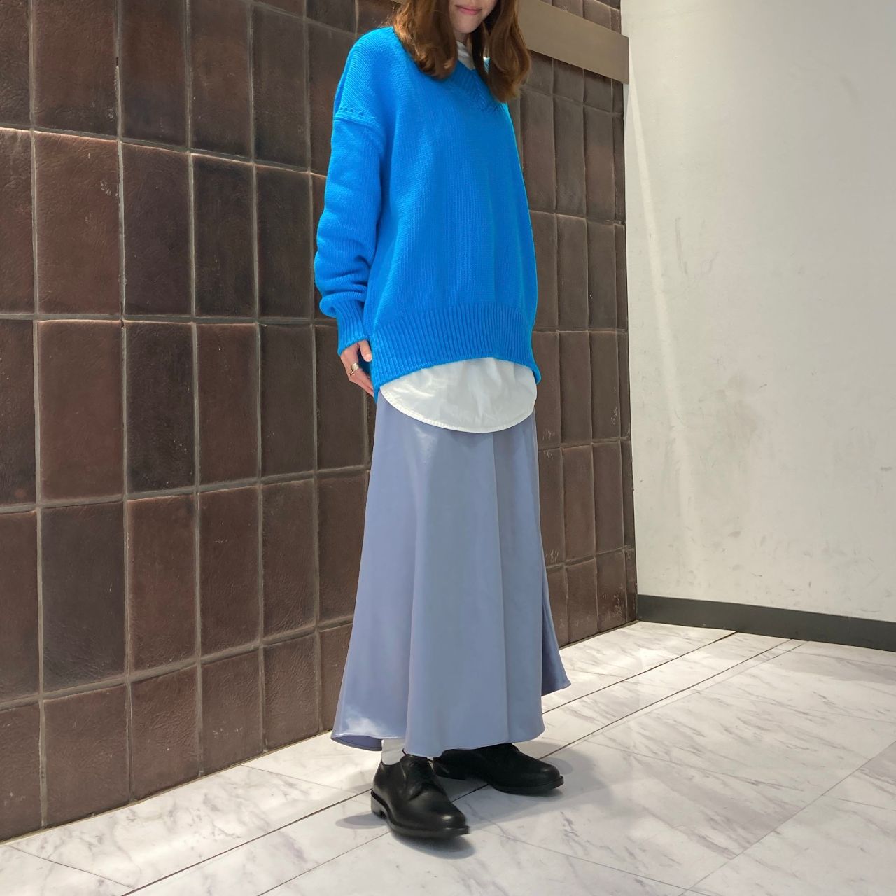 鮮やかなブルーニット×ベビーブルーのスカートにNEROを合わせて。