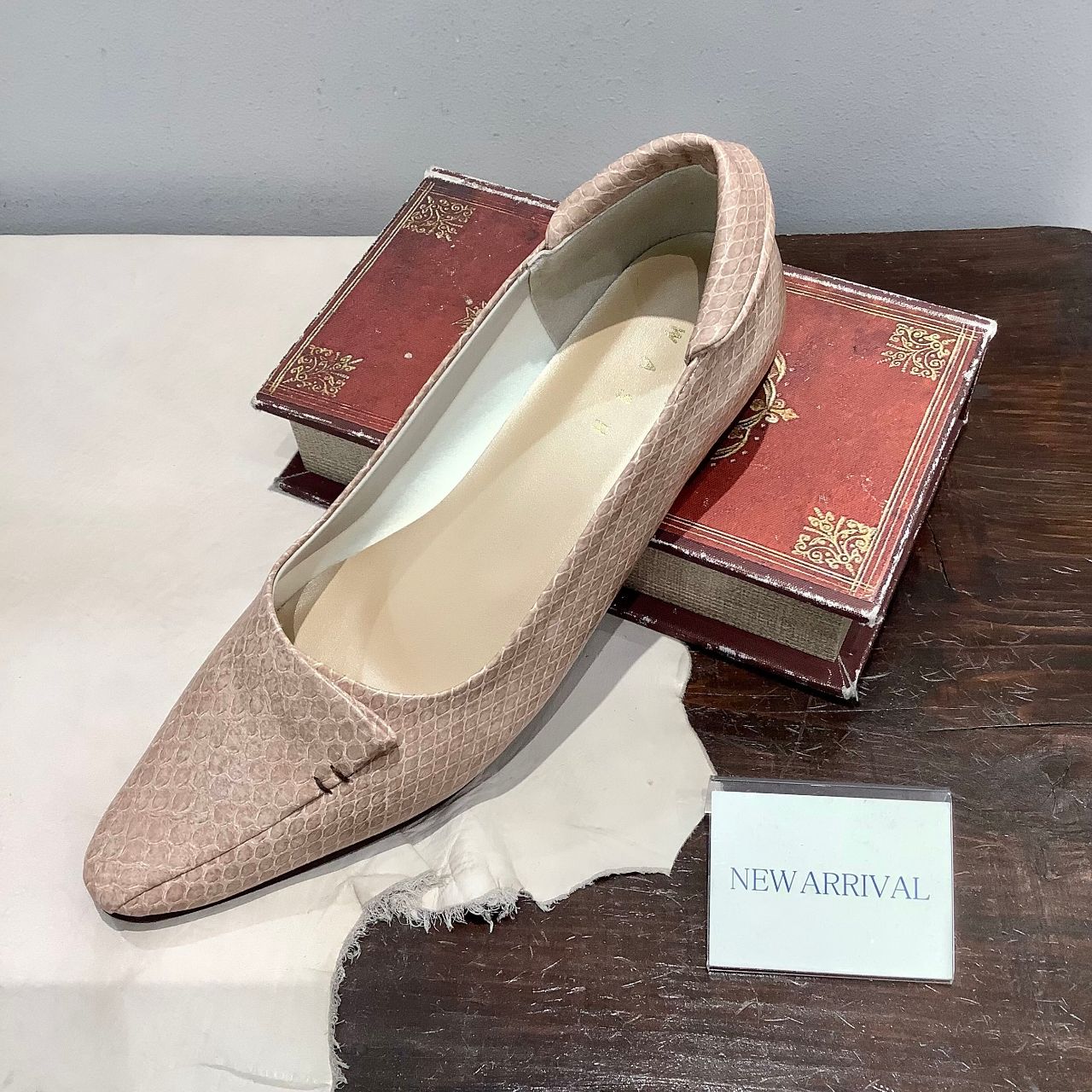 スネーク型押しで良いスパイスがきいた一足です☆
