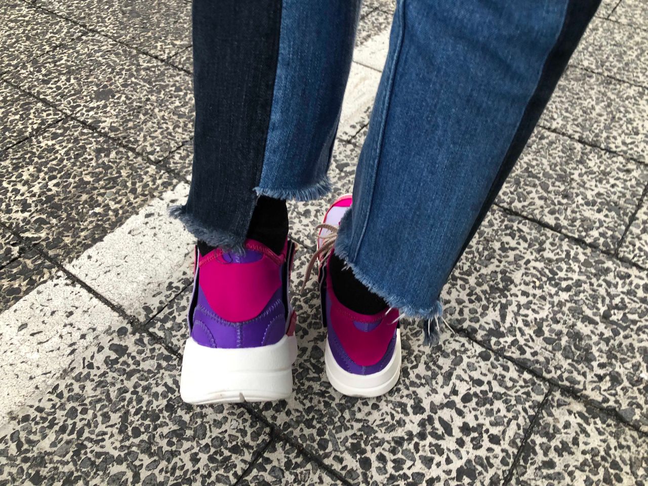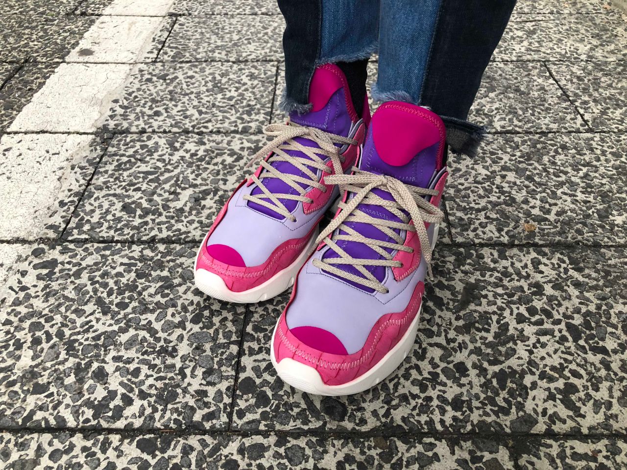 靴下のように足をぐっと入れて履くタイプのスニーカーなので、気持ち良いフィット感がありますよ。