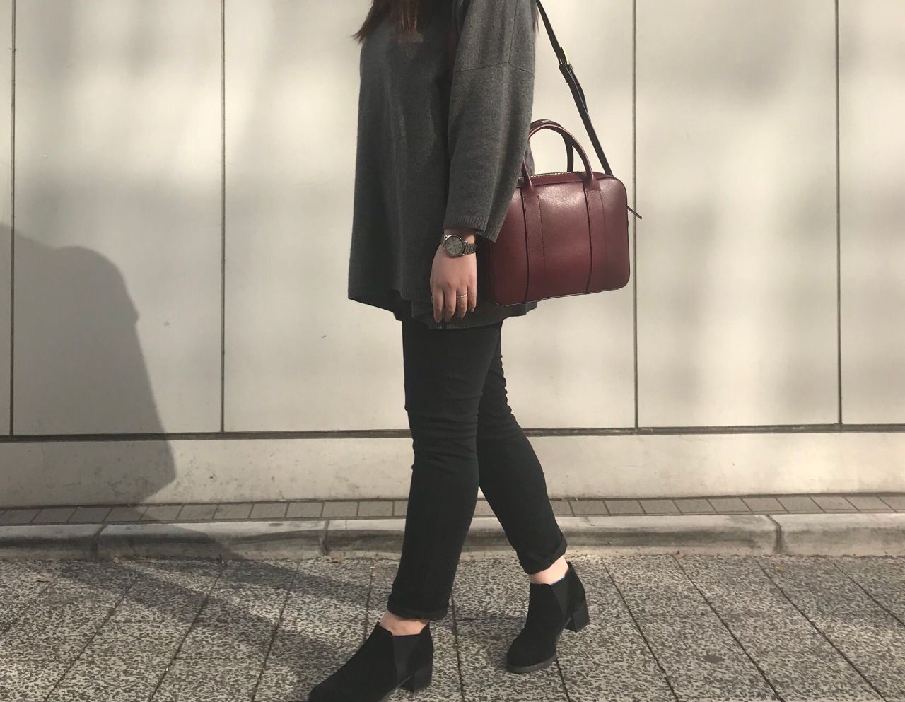 RUBINにグレーのニット×黒スキニーでシンプルなスタイルに合わせて◎