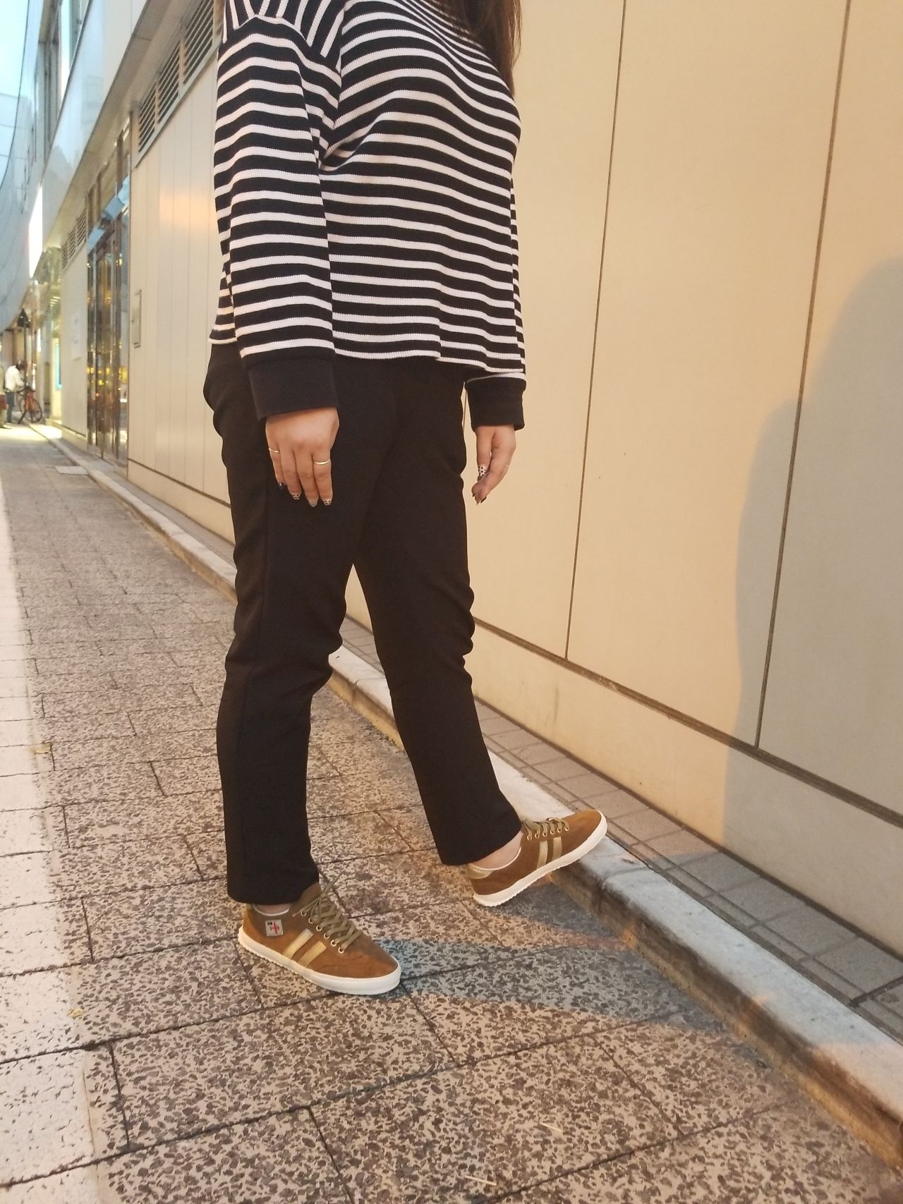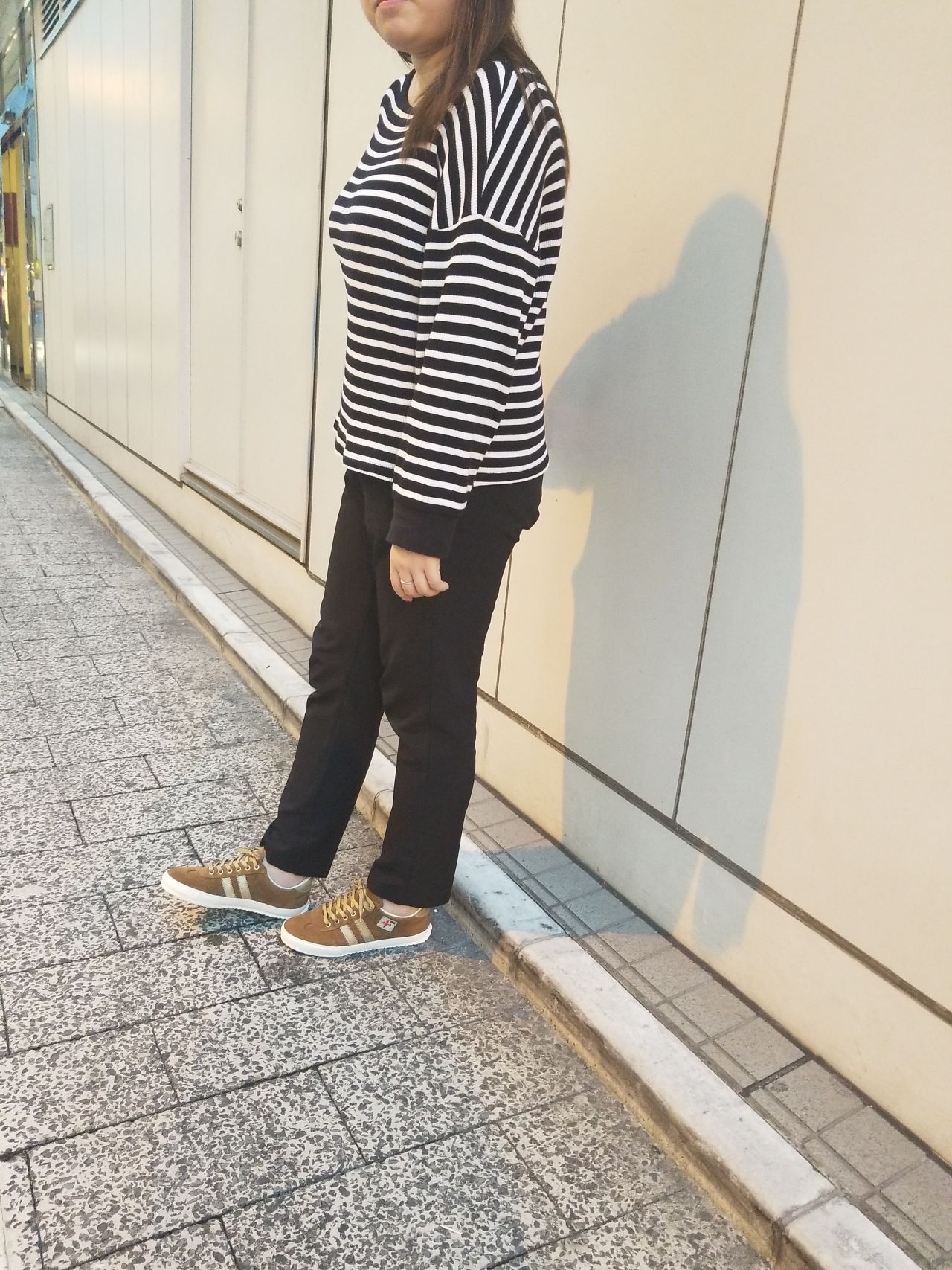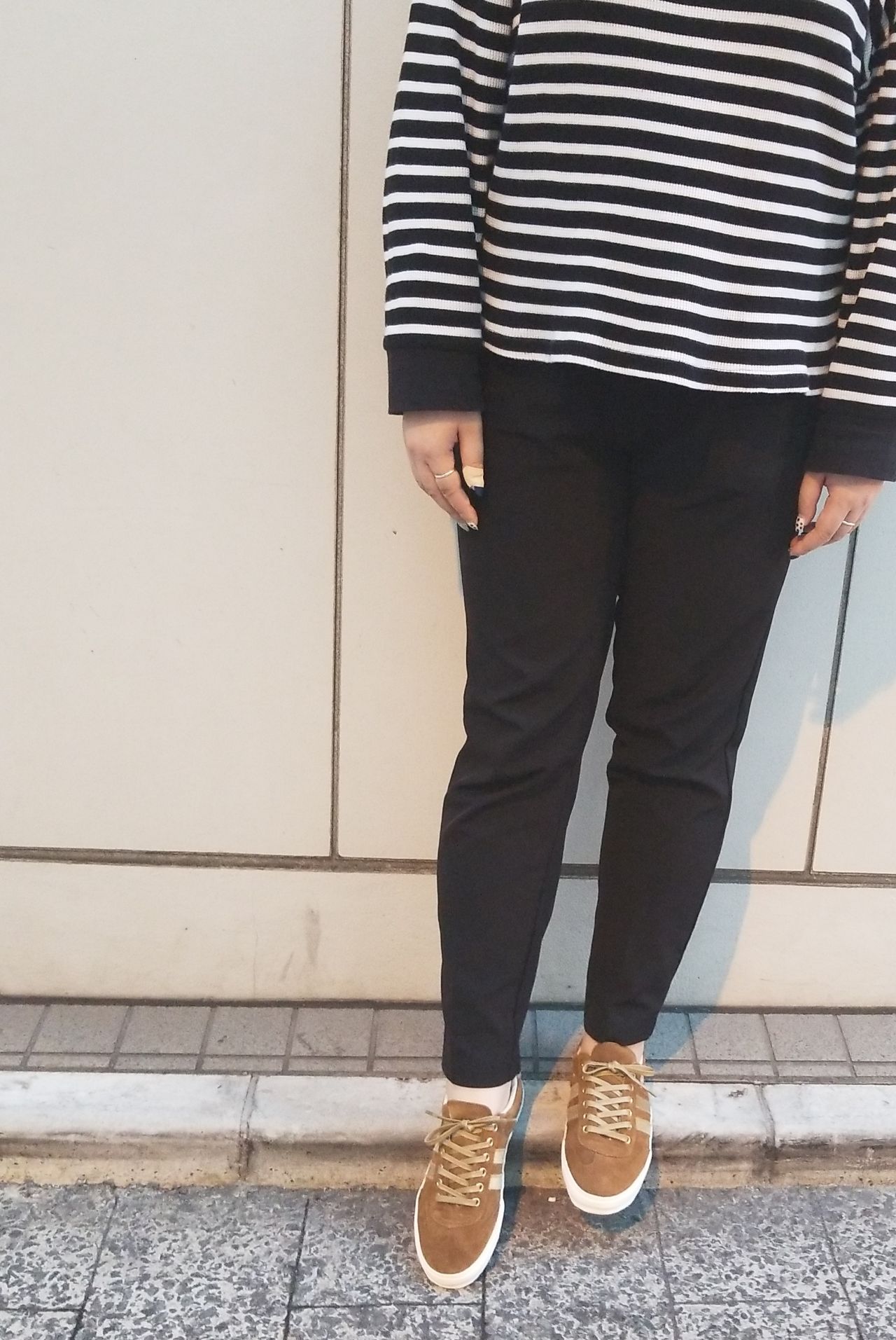 例えば今回のスタッフのように、スキニーパンツやクロップド丈など飛行機が隠れない様なボトムスを合わせてお履きいただくのがオススメですよ!