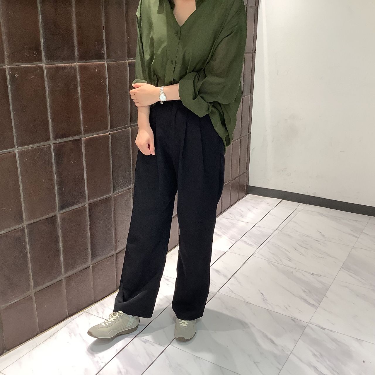 シアーシャツ×艶感タックワイドパンツのコーデに合わせて。