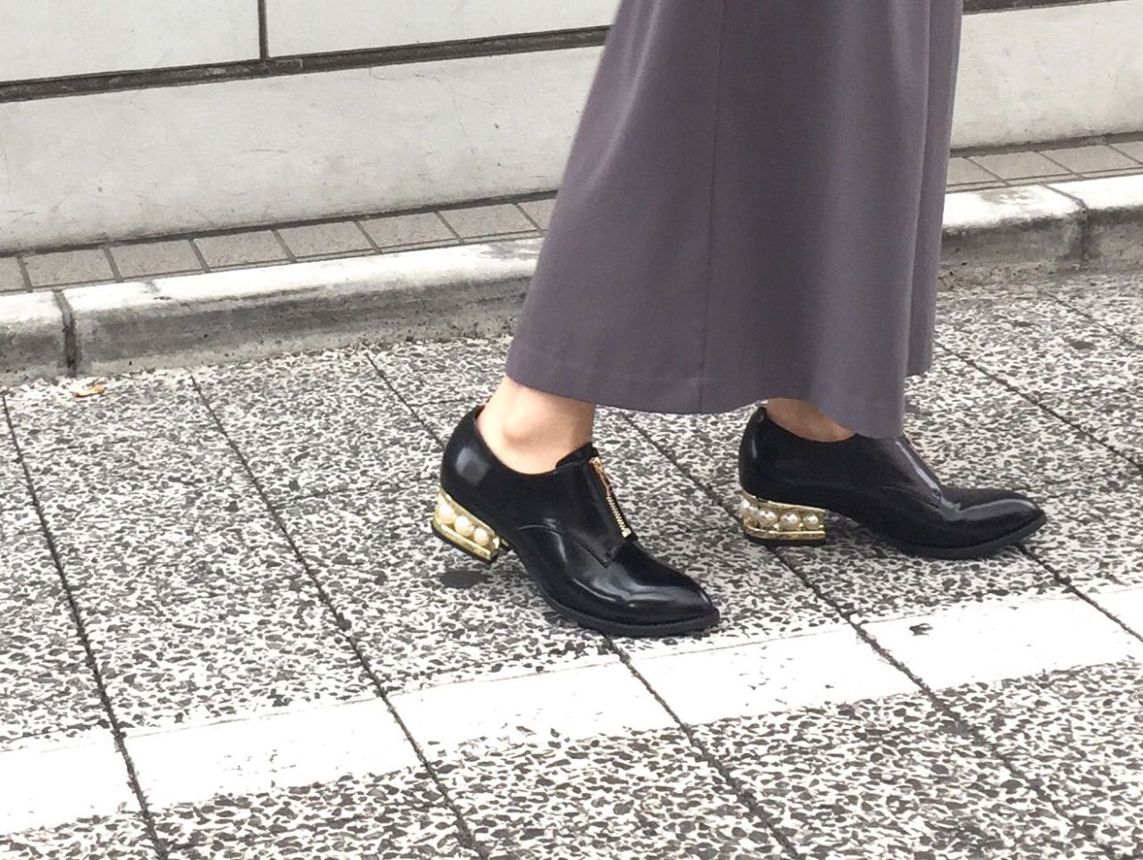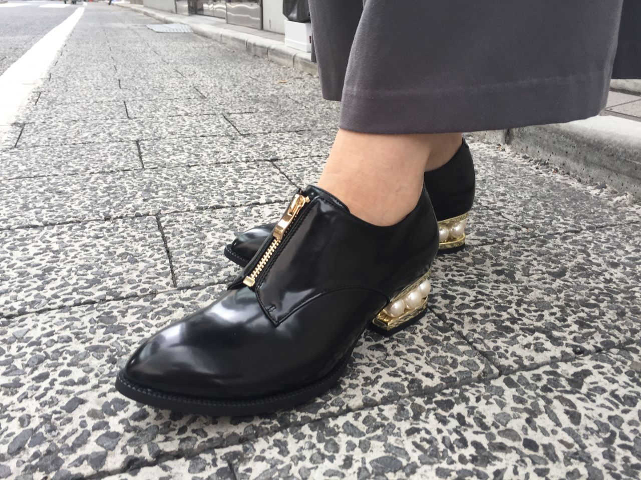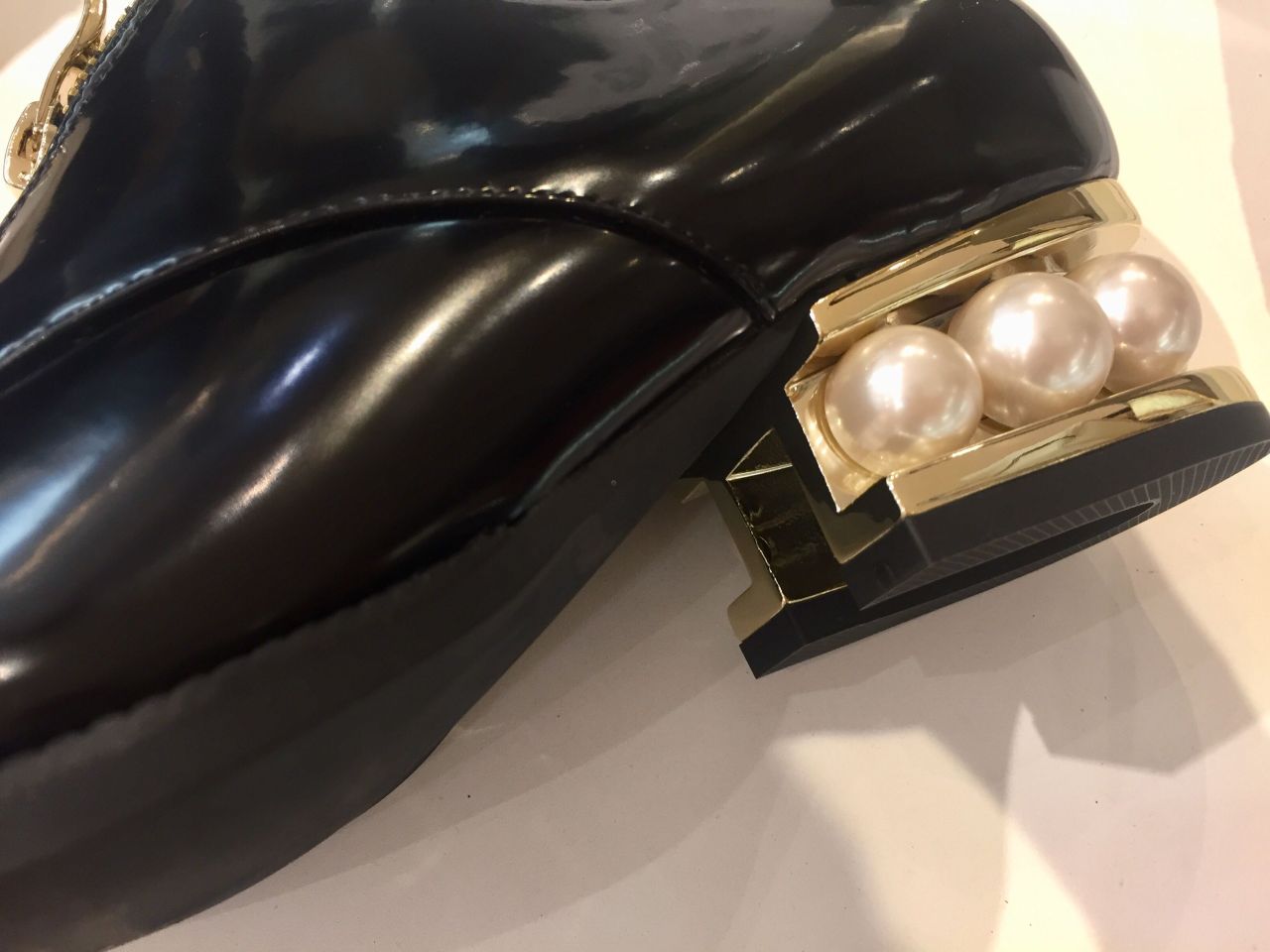 ヒールに施された大胆なパールがポイントのトラッドシューズです!