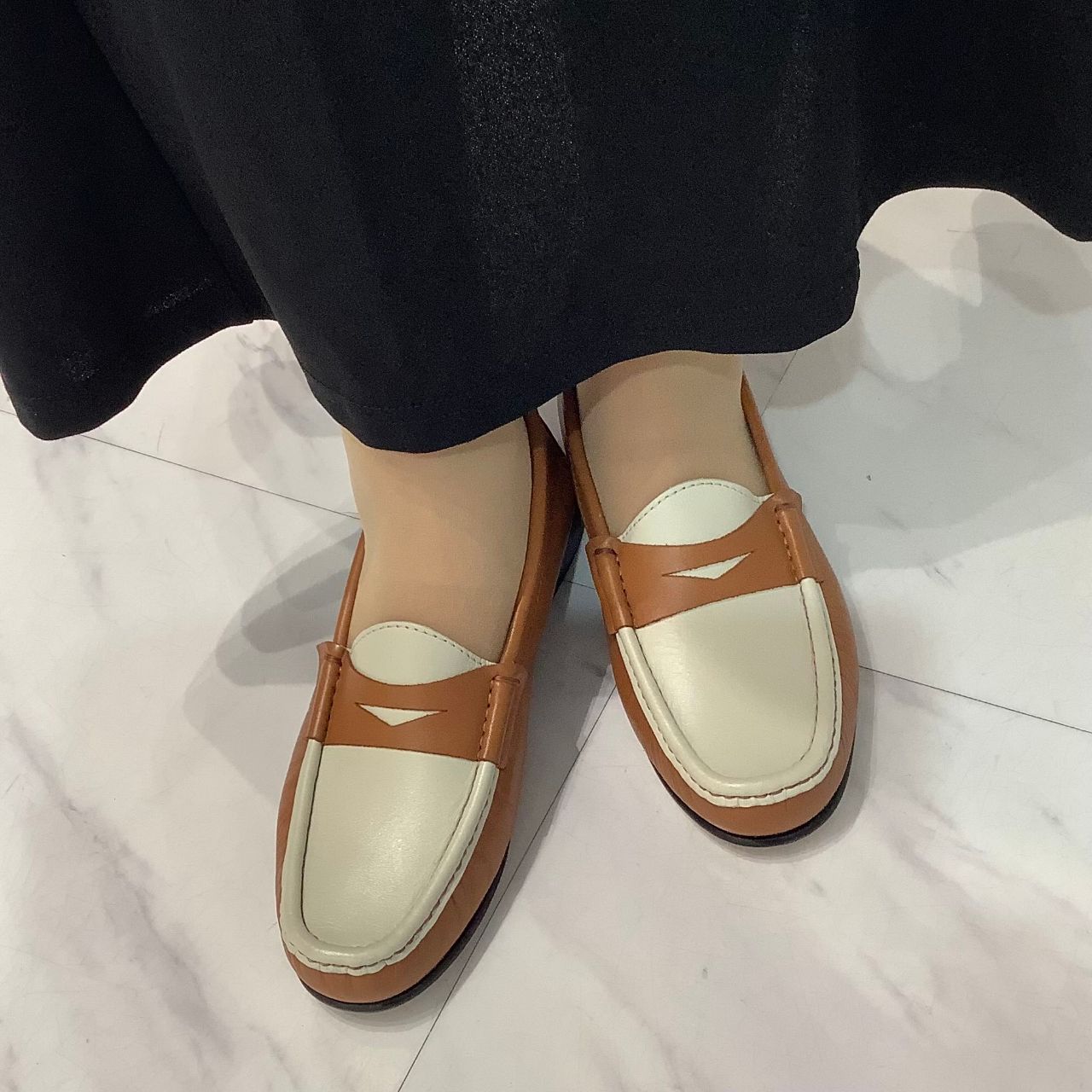 シンプルなシルエットのコインローファーなので普段使いはもちろん、