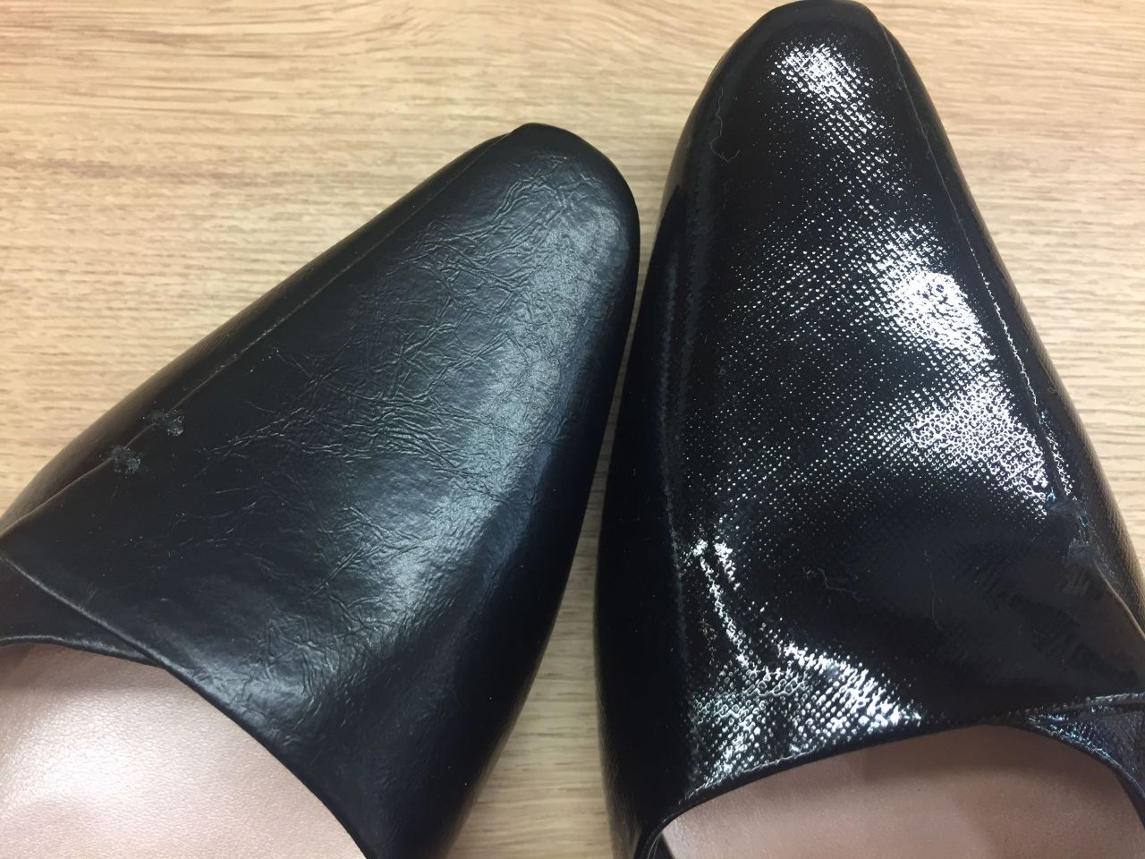 左が定番のブラック、右が今回の新色です。定番のスムース素材がベーシックなのに対して今回の新色はより華やかな印象になります。