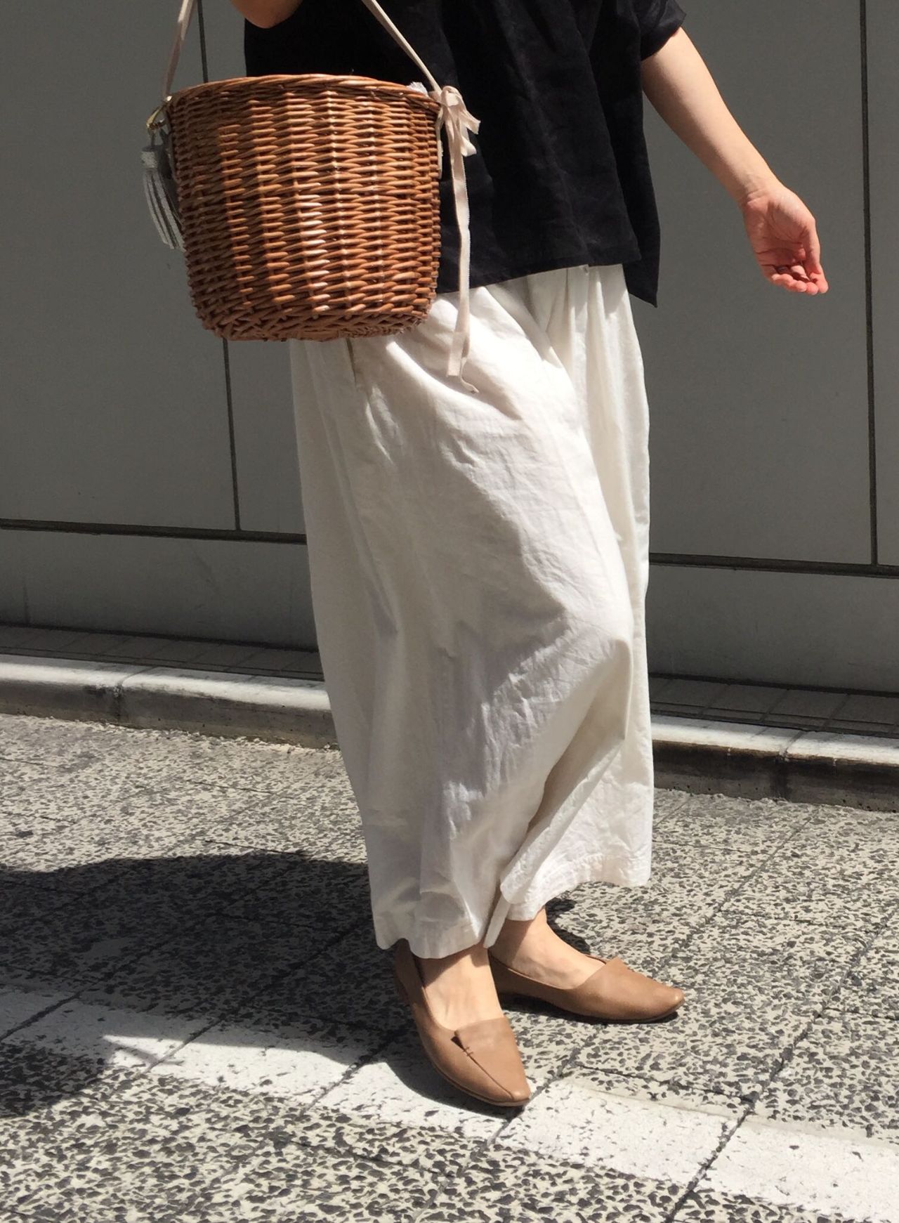 写真のようなカゴバッグと合わせるのも今の季節におすすめです☆