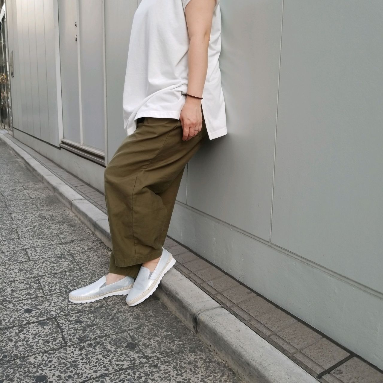 シンプルなコーディネートにメタリックカラーを合わせて夏らしく仕上げてみました。