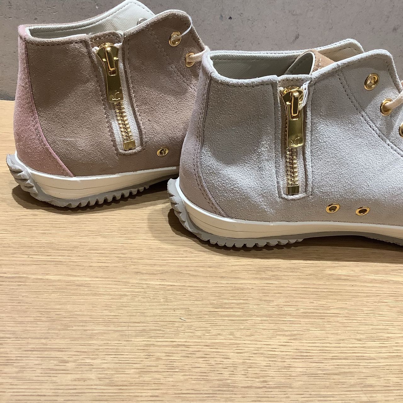 ハトメとファスナーはゴールド。女性らしさが感じられる一足です。