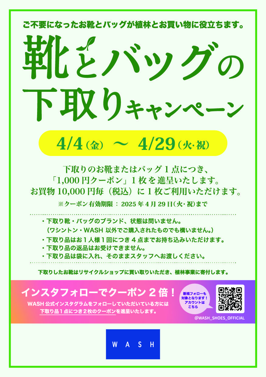 またWASH公式インスタグラムをフォロー(ご新規を含む)いただけますと、