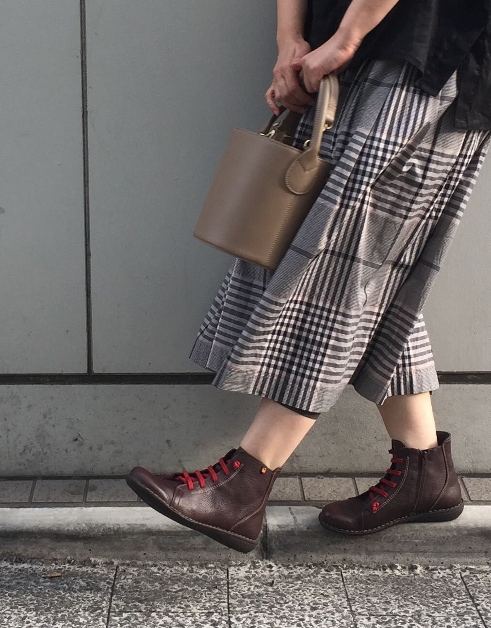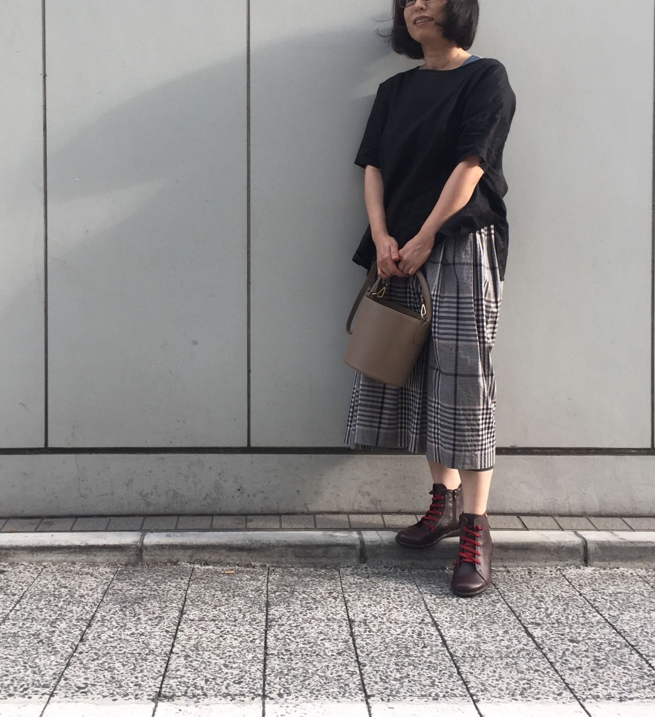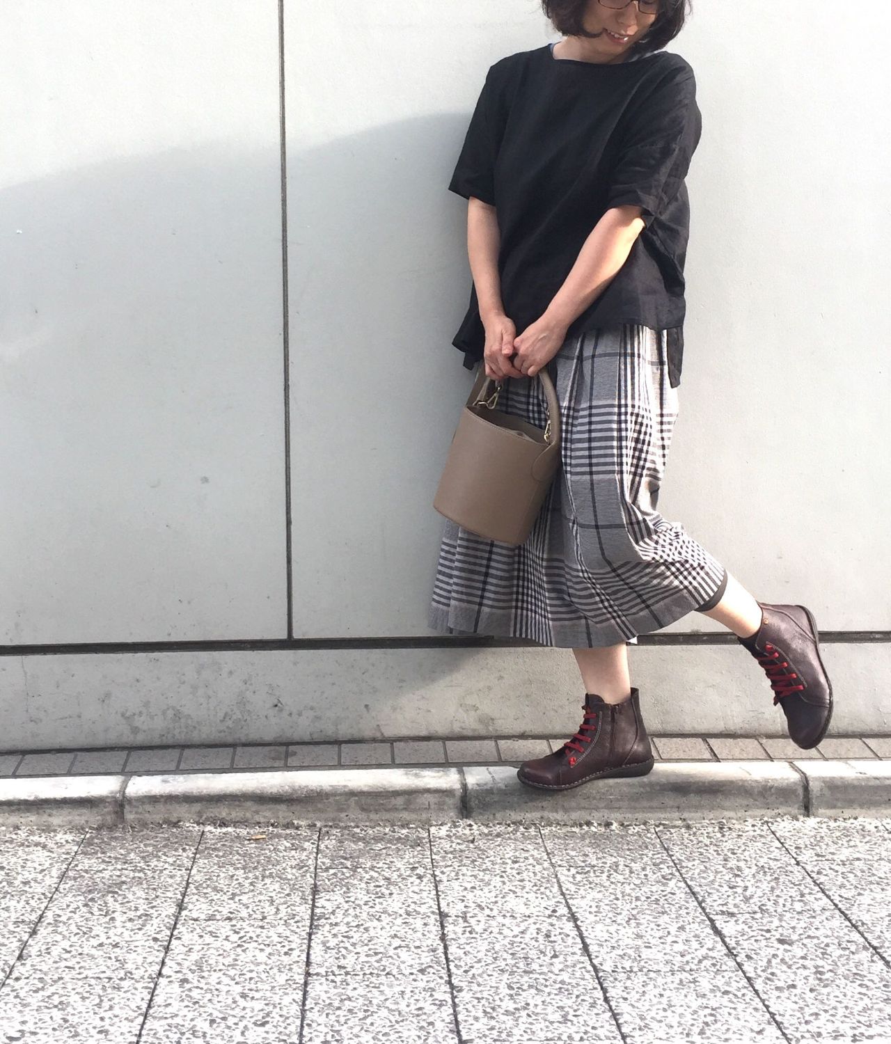 チェック柄のスカートにmarronを合わせて◎