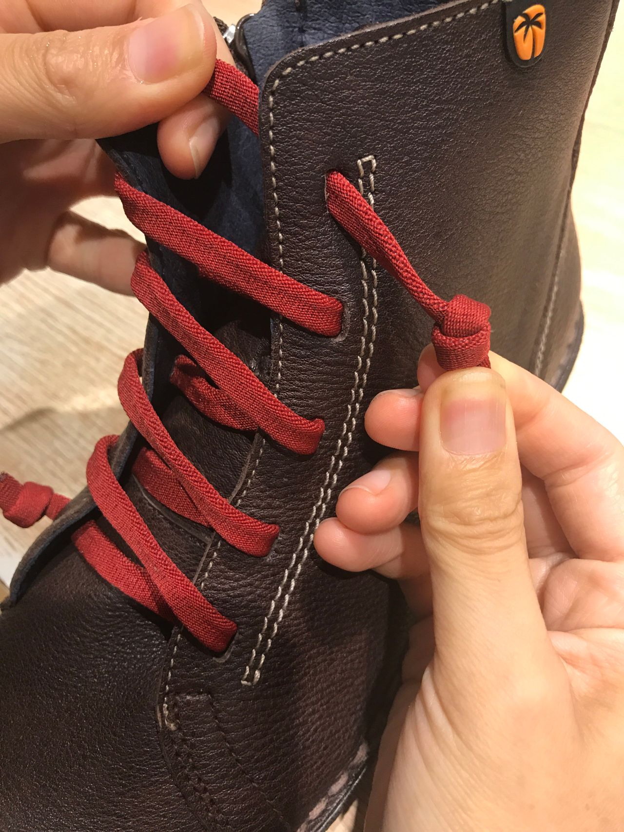 紐がゴムになっているので伸縮性があり、歩きやすいですね