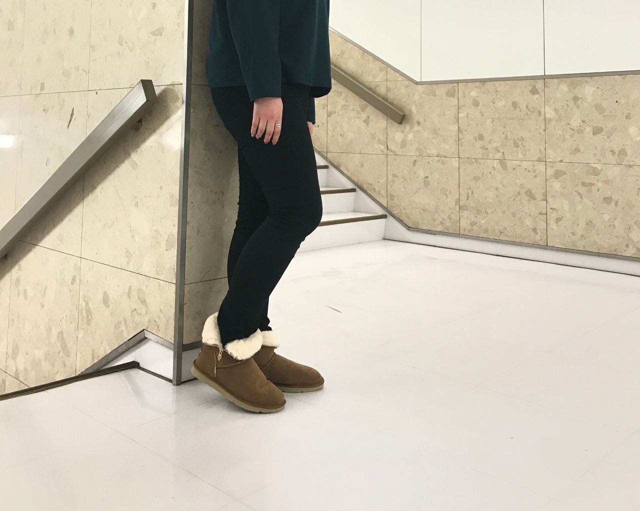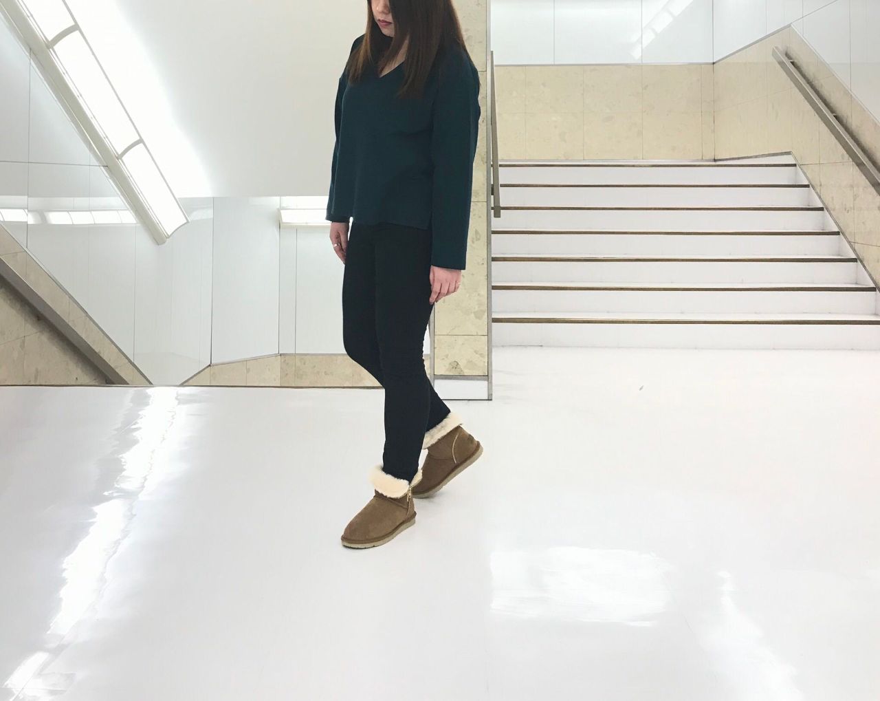 シンプルなコーディネートに足元にムートンブーツでアクセントを出してみました!