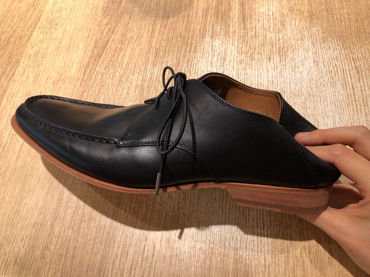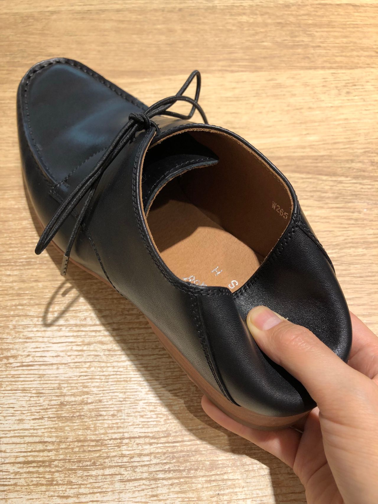 こちらのシューズ、踵部分に芯を入れておらず、踵部分を踏んでも履いて頂けるデザイン。